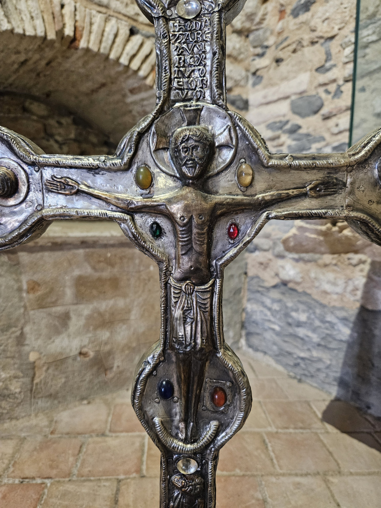 La creu de Sant Miquel del Fai és una creu molt apreciada pels historiadors de l'art per tractar-se d'una peça poc comuna. Consta d'una ànima de fusta, revestida per una capa de plata repussada i cisellada, però sembla que antigament estava completament daurada. És del tipus de creu llatina, amb el peu més allargat i els braços, amb medallons circulars, eixamplats en la seva part final.