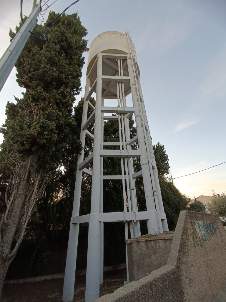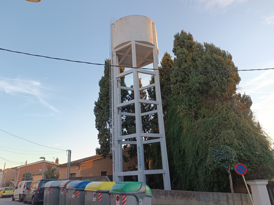 Dipòsit cilíndric de ciment alçat sobre una estructura de base hexagonal, també de ciment, formada per sis columnes unides amb quatre nivells de bigues transversals. Una escala metàl·lica vertical permet l’accés al capdamunt del dipòsit.