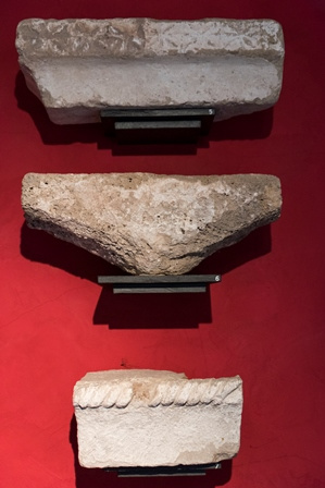 Es tracta d'una petita mostra dels elements recuperats en les diverses campanyes d'excavació entre els anys 1984 a 2008. En el magatzem del monestir es conserven altres fragments com ara restes d'un finestral romànic desmuntat, una lauda sepulcral, una llinda de les portes del monestir, fragments de tambor, de fusts i també de capitells mensuliformes així com un altre cenotafi en pedra tosca molt mal conservat. Aquests elements es van documentar de forma exhaustiva en les seves campanyes d'excavació però es va creure convenient no exposar-los.