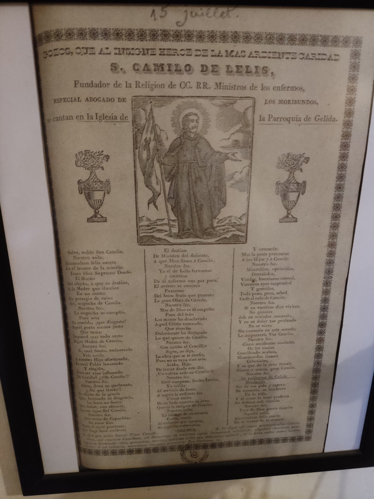 El 2021, Enric Carafí publicava que s'havia descobert un goig desconegut dedicat a Sant Camil de Lelis a la Biblioteca de Montpeller. Fins a aquesta troballa, es creia que a Gelida només existien els goigs de Sant Pere, Sant Roc, Santa Llúcia, Sant Antoni, la Mare de Déu de la Salut, i Santa Magdalena del Puig. El goig de Sant Camil, en castellà, lloa aquest sant com el fundador de la Religión de CC.RR. Ministros de los enfermos i especial advocat dels moribunds, i es cantava a l'església de la parròquia de Gelida fins que aquesta va ser cremada el 1936. Aquest goig probablement va ser editat a finals del segle XIX.
