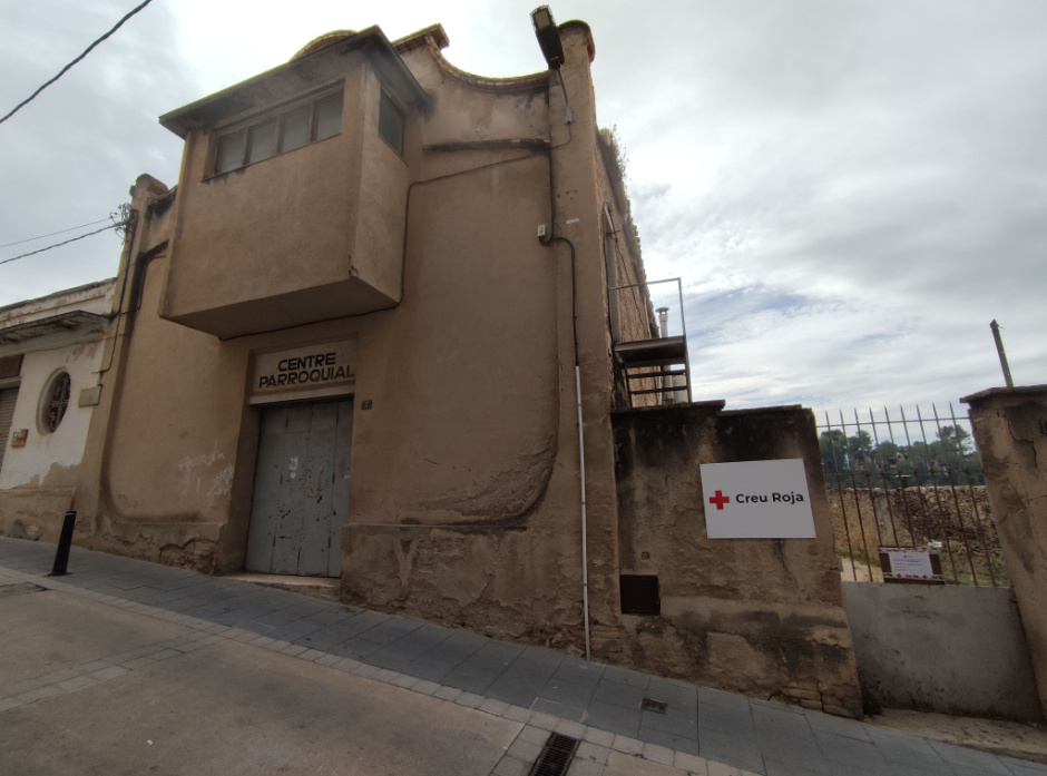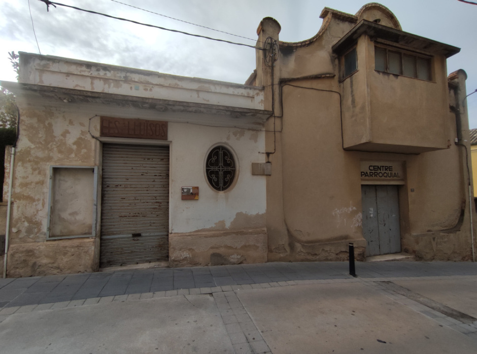 La façana de l'edifici més antic està acabat amb un capcer ondulat i ràfec de maó pla. En algun moment a la façana s'hi va afegir una galeria de grans dimensions, amb un gran ràfec, i de línies molt rectes, que trenca força l'estètica original. No sembla pintat, simplement arrebossat. A sobre de la porta hi podem veure anunciat que es tracta, o tractava, del centre parroquial.