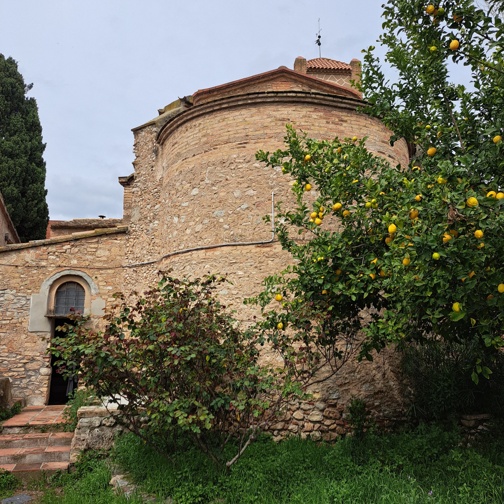 El tractament dels murs es manté enguixat amb policromia a l'interior i amb restes d'arrebossat de morter de calç a fora, on a causa del deteriorament es pot veure el parament de pedra lligada amb argamassa.