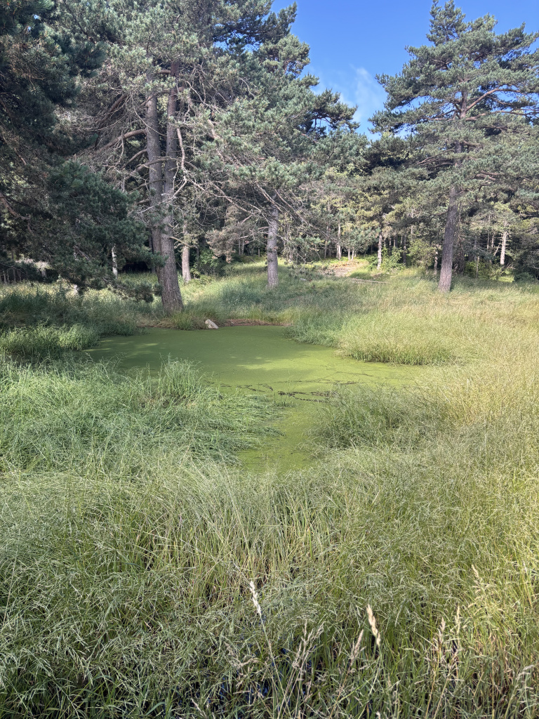 Petit estany amb aigua amb una capa de verdet al damunt, i al seu entorn hi ha uns avets que flanquegen l’estanyet. Es troba al costat del camí de Coma de la Veça que uneix els nuclis de Fígols i Peguera. S'unica en un bosc frondós i semblaria que al llarg dels anys, i sobretot en moments de pluja, segurament tenia una utilitat d'abeurador de la fauna local.