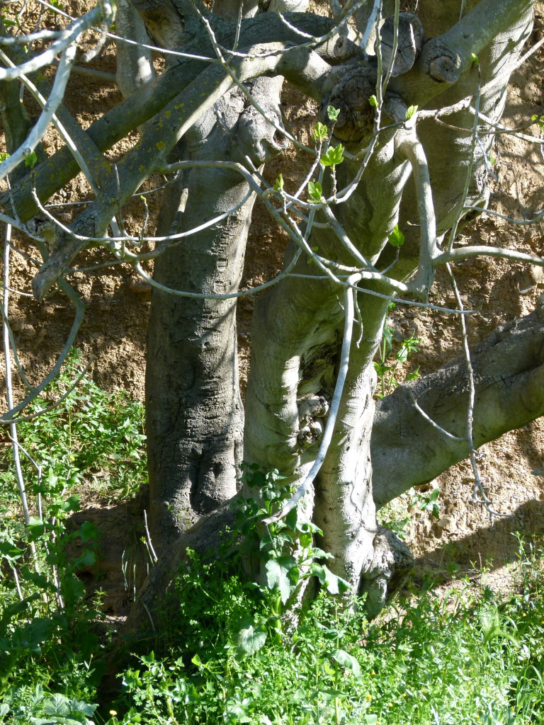 De la família de les moràcies, l’individu presenta un tronc tortuós i robust de quatre peus, que recorda la forma d’una pota d’elefant, amb una escorça llisa de color gris. La capçada és esfèrica amb branques entortolligades.