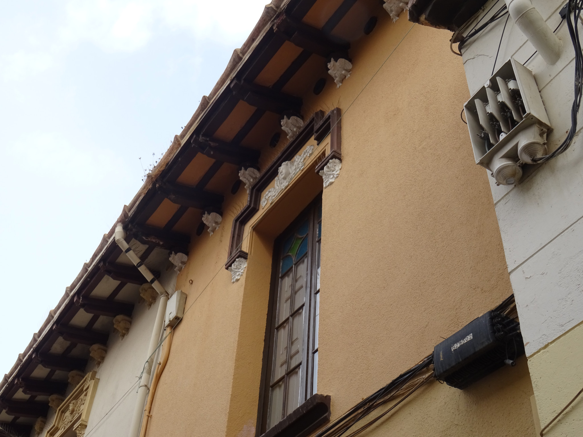 En un principi a la planta baixa cada casa tenia dues obertures (la porta i una finestra), decorades amb una gran llinda amb relleus. Algunes encara conserven aquesta decoració, tot i que la majoria l'han perdut. Consisteix en una àmplia llinda motllurada que conté un relleu amb un motiu vegetal d'inspiració clàssica. A la planta pis en cada casa destaca un finestral força gran de proporció vertical, amb un emmarcament superior motllurat que descansa sobre uns relleus, i que inclou també un cap de noia al centre, amb una orla de fulles d'acant. El coronament es resol mitjançant un ràfec comú que engloba tla totalitat de les cases, el qual està sustentat en caps de biga recolzats en mènsules amb relleus que adopten la forma d'un grif neogòtic.