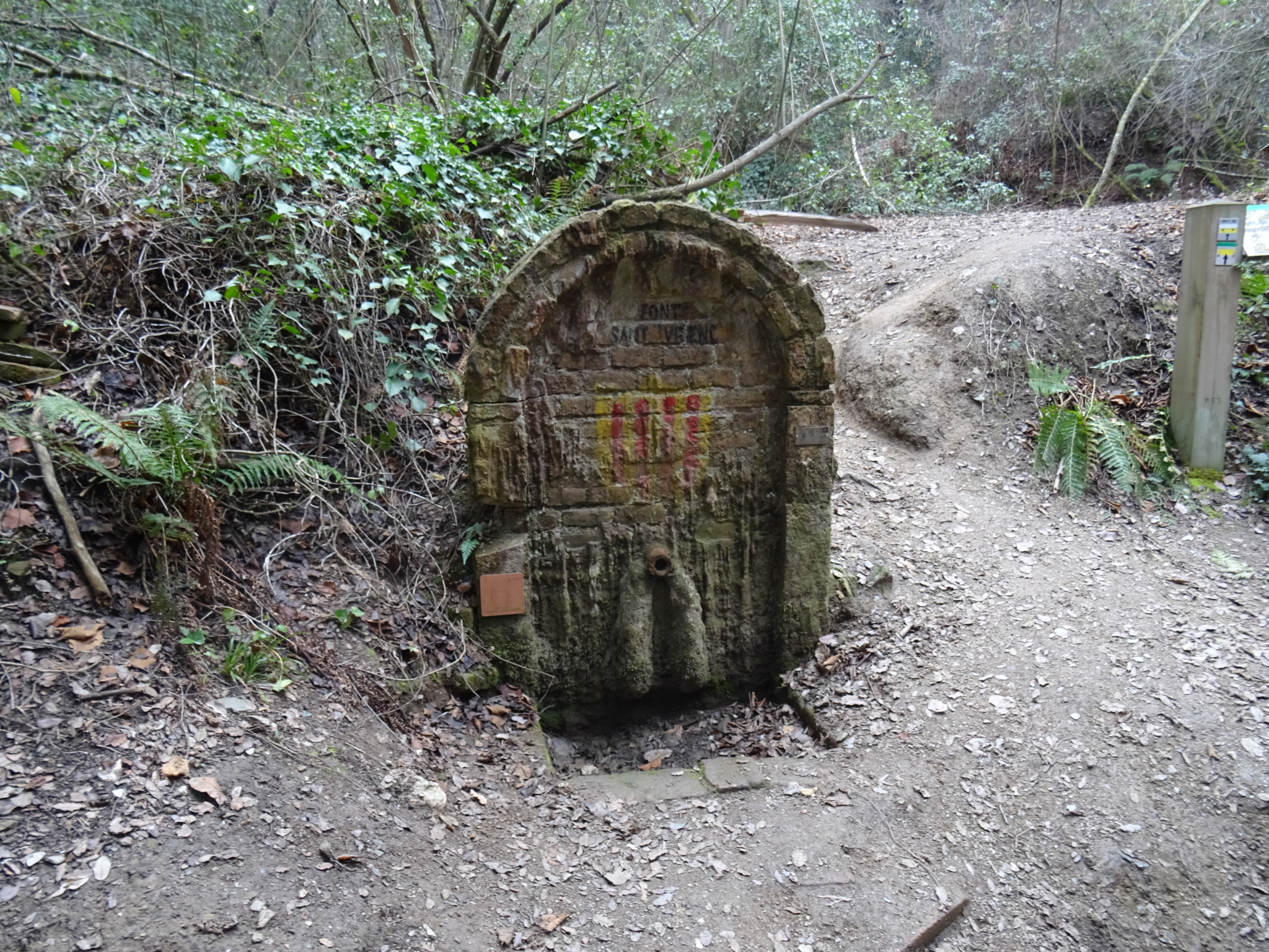 Font situada prop del jaciment arqueològic de l'antiga església de Sant Vicenç del Bosc, en un marge del torrent de Can Gordi.