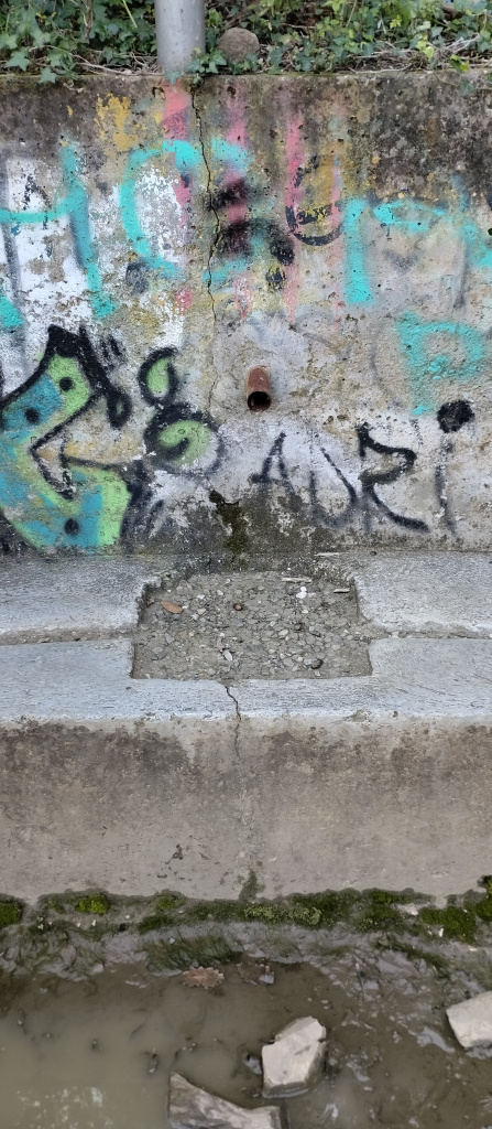 L’aigua raja d’un broc cilíndric de ferro i cau a una pica quadrangular situada a la base. Aquesta pica desguassa, mitjançant un rec situat al banc corregut, a dues petites basses situades a cada extrem del mur de contenció.