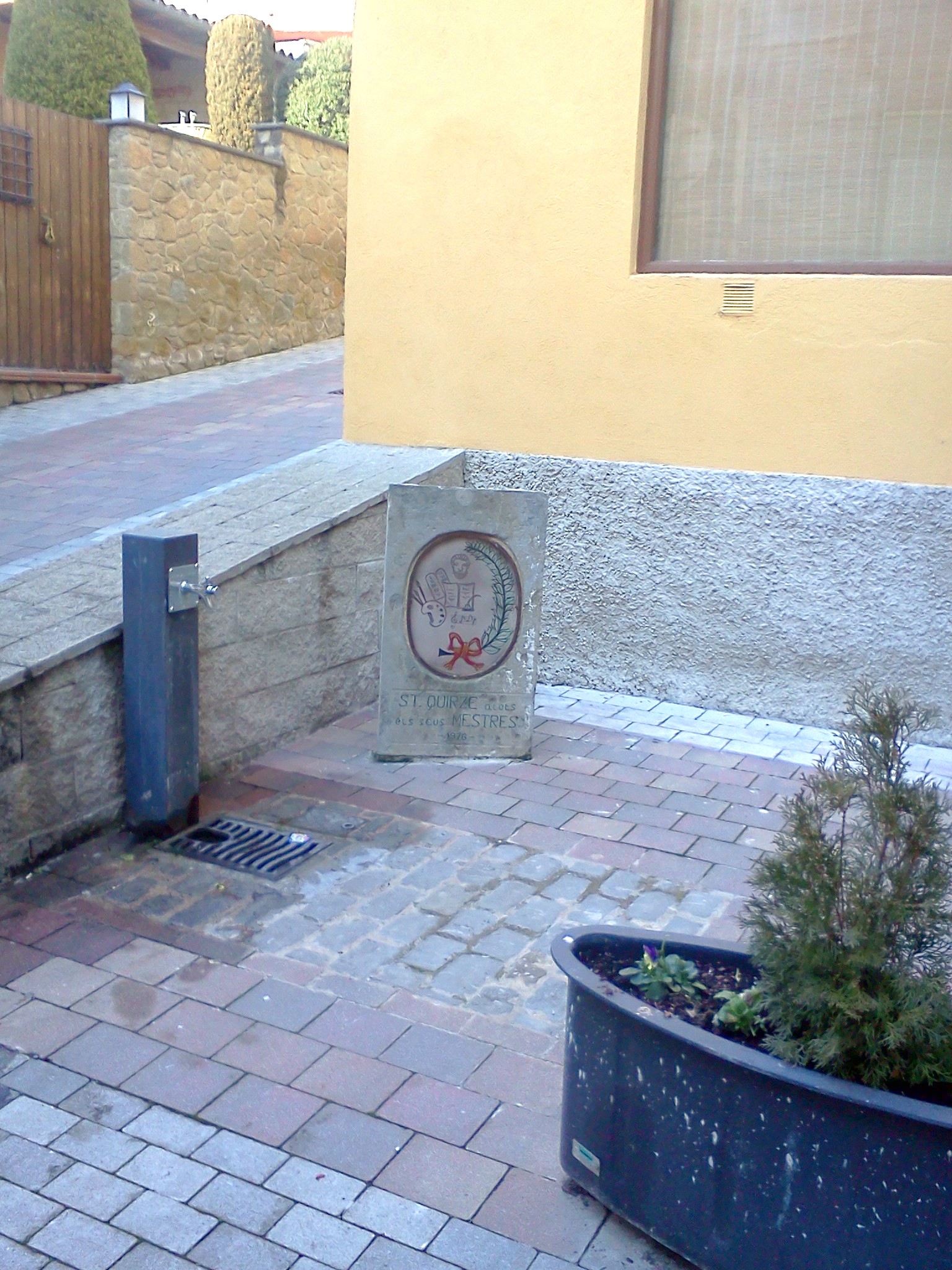 Font que es conserva en un racó de la plaça creada en el moment d'enderrocar l'antiga casa de Can Toia. Es tracta d'una font urbana que consisteix en una modificació de l'antiga font dels mestres emplaçada al mateix indret que l'antiga. Al costat d ela font hi ha un medalló que al·ludeix aquesta professió tat important pels joves de la vila. En aquesta hi ha la inscripció de SANT QUIRZE DE BESORA A TOTS ELS SEUS MESTRES i la data de 1976 amb un dibuix d'una ploma, una paleta de pintura, una taula dels deu manaments de la Llei de Déu i un llibre amb un rostre dels mestres