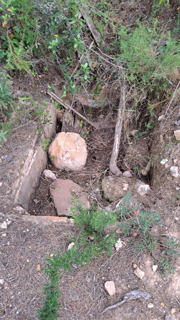 Al voltant creixen matolls, i sobretot romaní i llentiscle. Es troba al peu d'una pedrera.