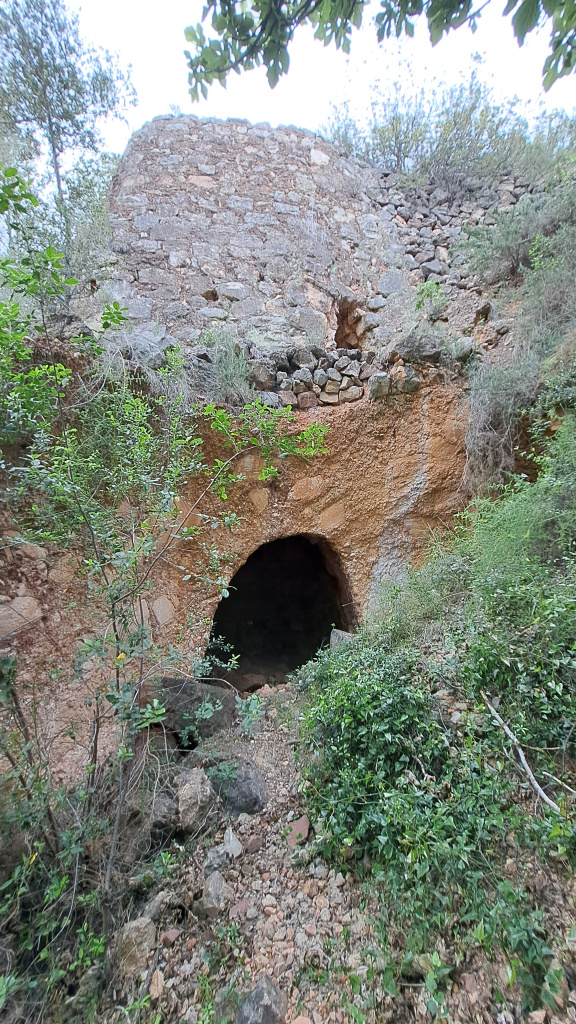 L'entrada al forn que es troba en millor estat i que conserva la cúpula es fa des de la paret lateral del forn ensorrat.