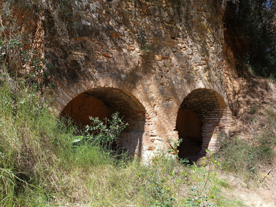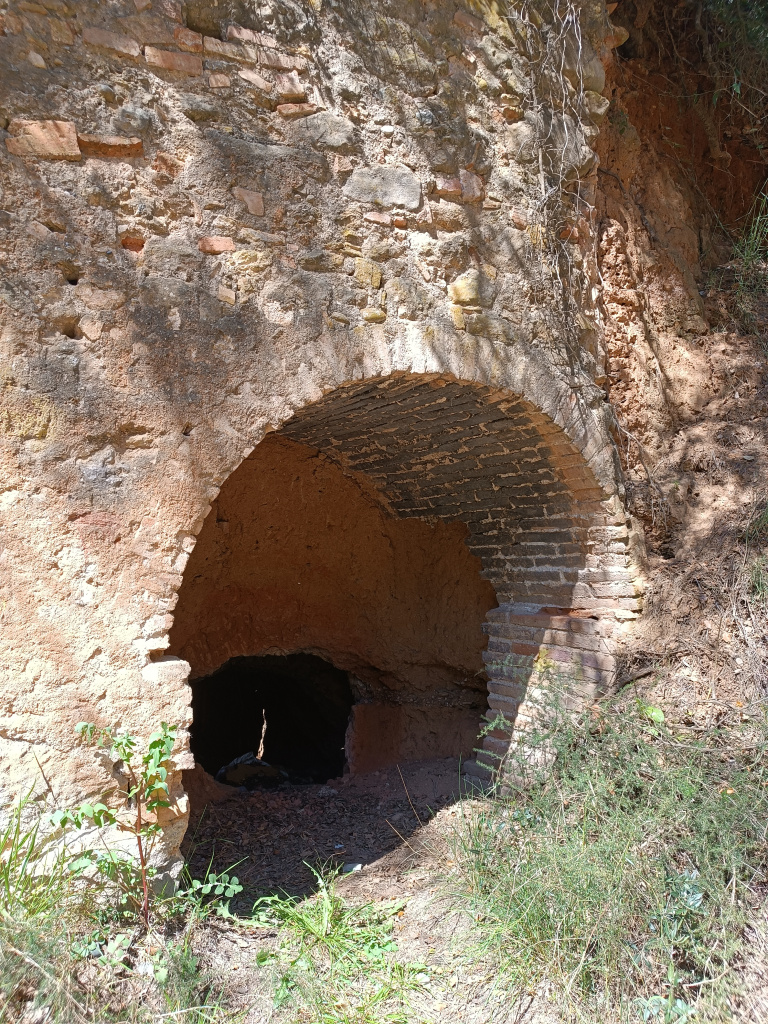 Forn d’obra adossat a un marge de terra argilosa. Té una planta quadrangular d’uns tres per tres metres, i una alçada aproximada de també tres metres. Està construït amb maçoneria irregular de pedra i maons i té un acabat arrebossat. Disposa de dues boques d’arc de mig punt de maons, ennegrits a causa del fum. Un forat en cada boca permet observar la cambra de combustió; el sediment que envolta l’obertura es presenta rubefactat degut a les altes temperatures que devia assolir la cambra durant la cocció.