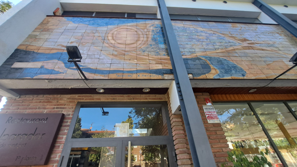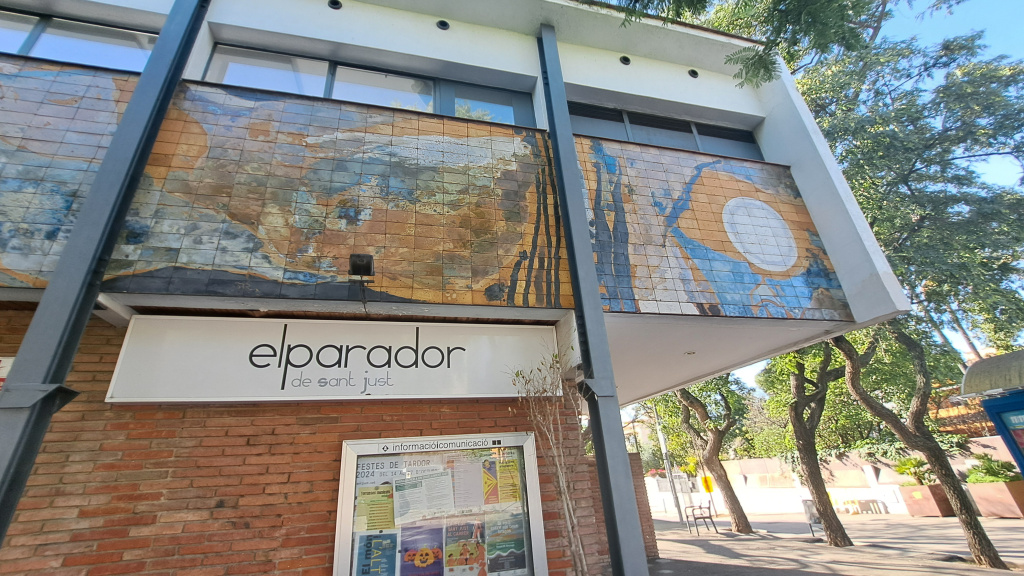 Fris ceràmic format per sis plafons de rajoles refractàries pintades. La composició artística està disposada a l’edifici conegut com el Parador, a la meitat superior de la façana orientada cap a la rambla de Sant Just, situat al número 25 d'aquesta via.