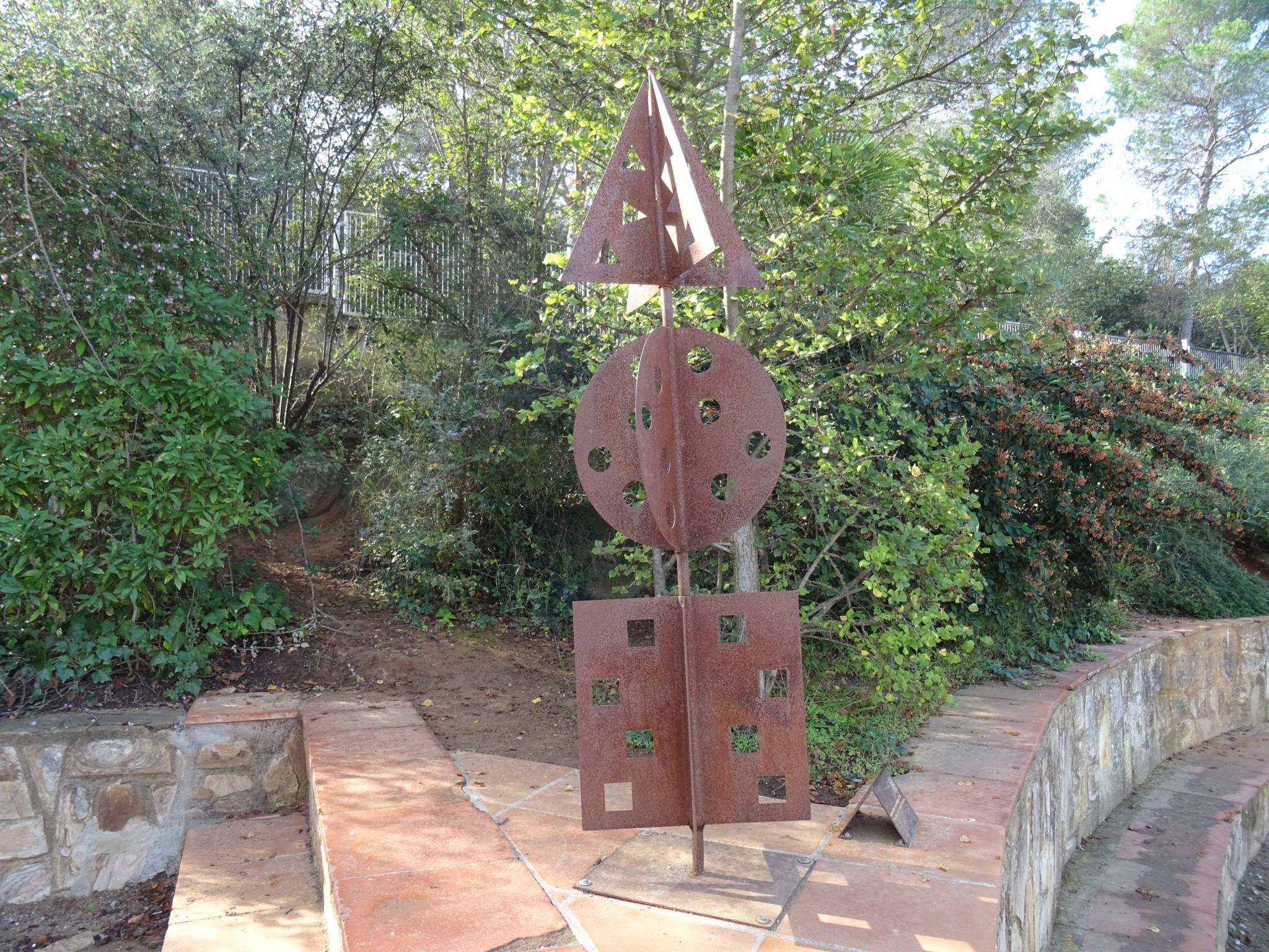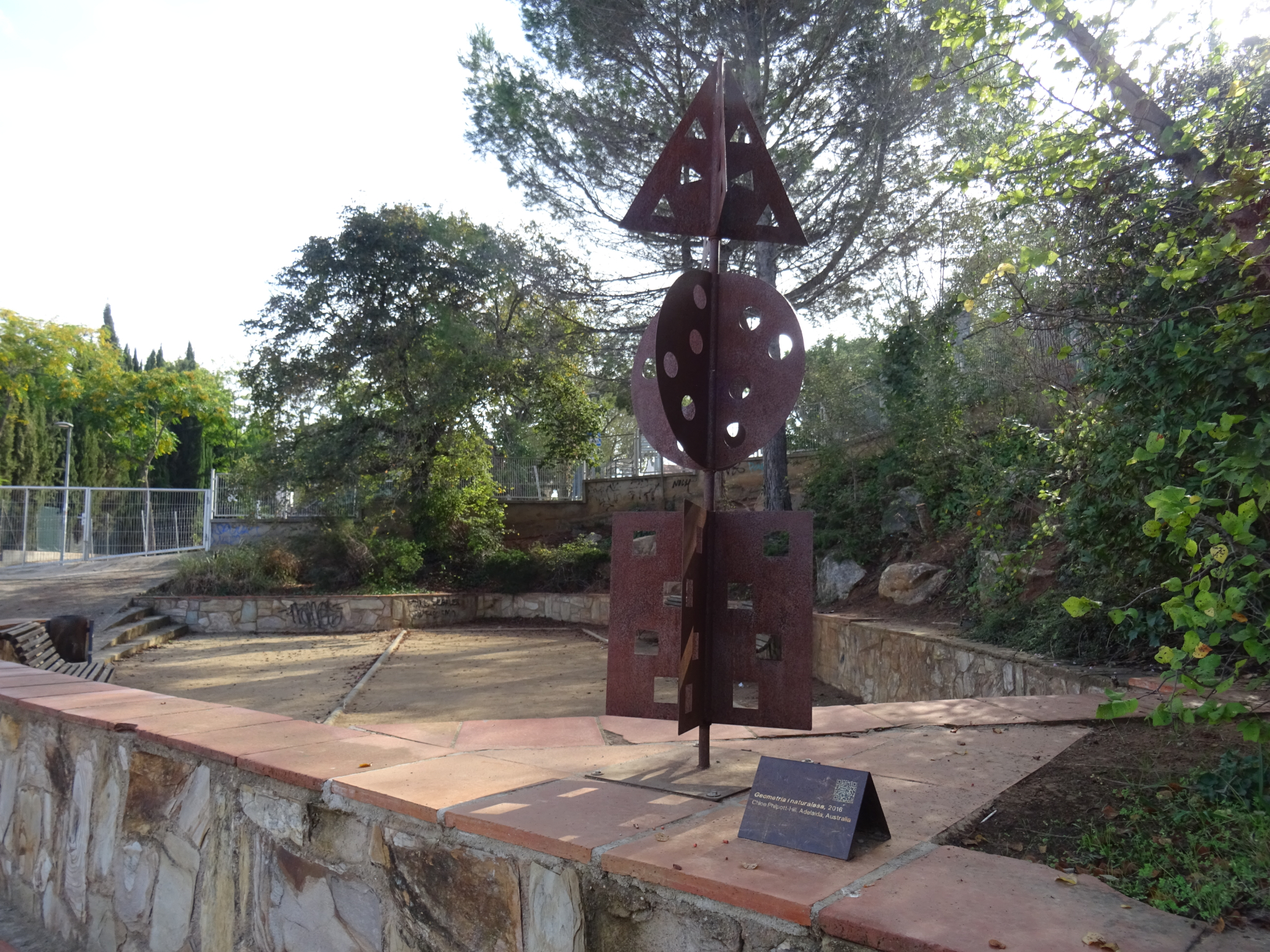 Escultura situada dins del recinte del Casalet de Valldoreix, al costat d'una pista de petanca, sobre un mur de ciment. Obra de l'artista Chloe Philpott – Hill, d'Austràlia. L'escultura, feta en ferro, presenta un acabat en òxid, i està format per tres formes. La inferior, dos quadrats disposats perpendicularment, amb perforacions quadrangulars a la superfície. La segona peça són dos cercles amb la mateixa disposició i tipus d'ornamentació. I, a la part superior, dos triangles, disposats i ornamentats de la mateixa manera, que recorden la punta d'una llança.