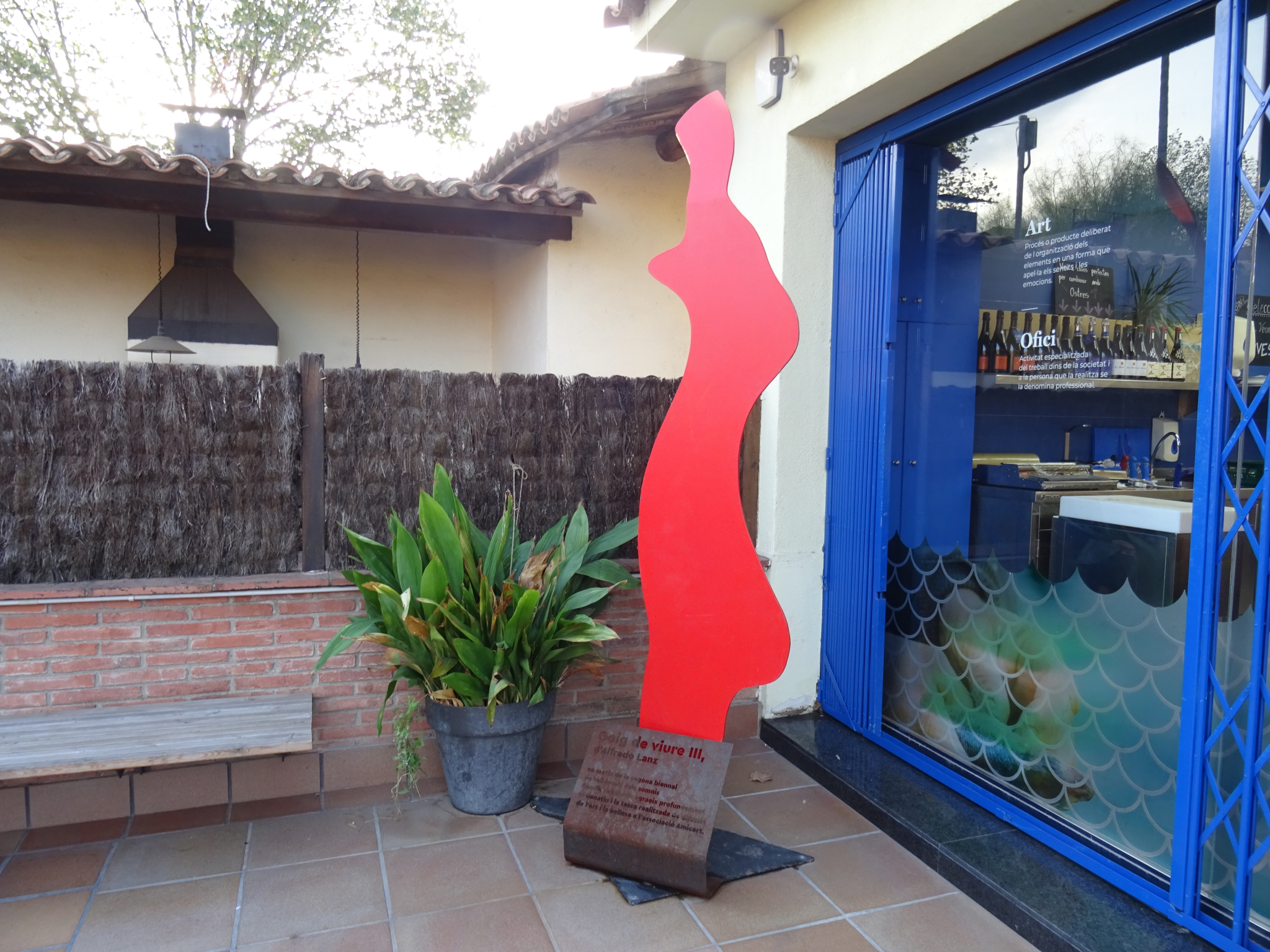 L'escultura Goig de Viure III, d'Alfredo Lanz, representa una figura femenina, feta amb acer patinable, pintat de vermell i negre. Està situat davant de la peixateria del Condis Valldoreix, a la plaça del Mas Roig.