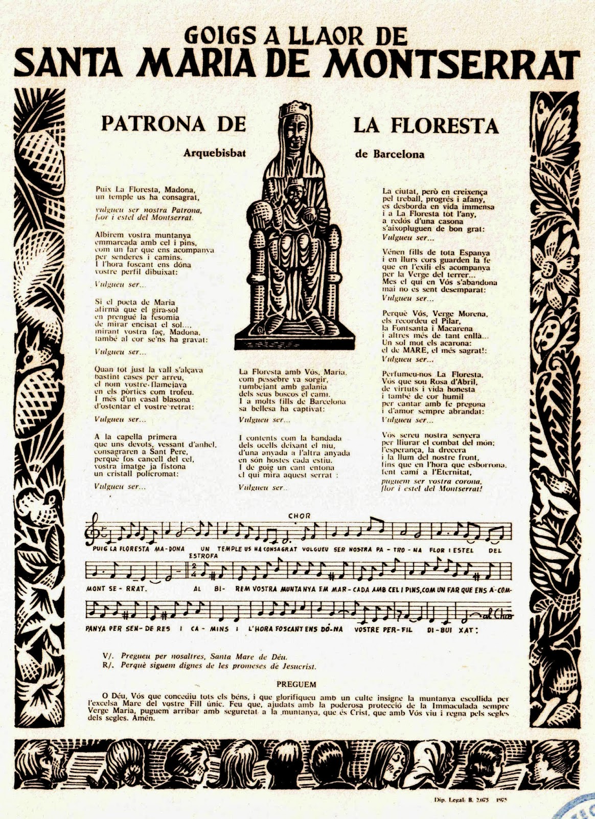 "La Floresta amb vós, Maria / com a pessebre va sorgir, / rumbejant amb galania / dels seus boscos e camí. / I a molts fills de Barcelona / sa bellesa ha captivat". [...]