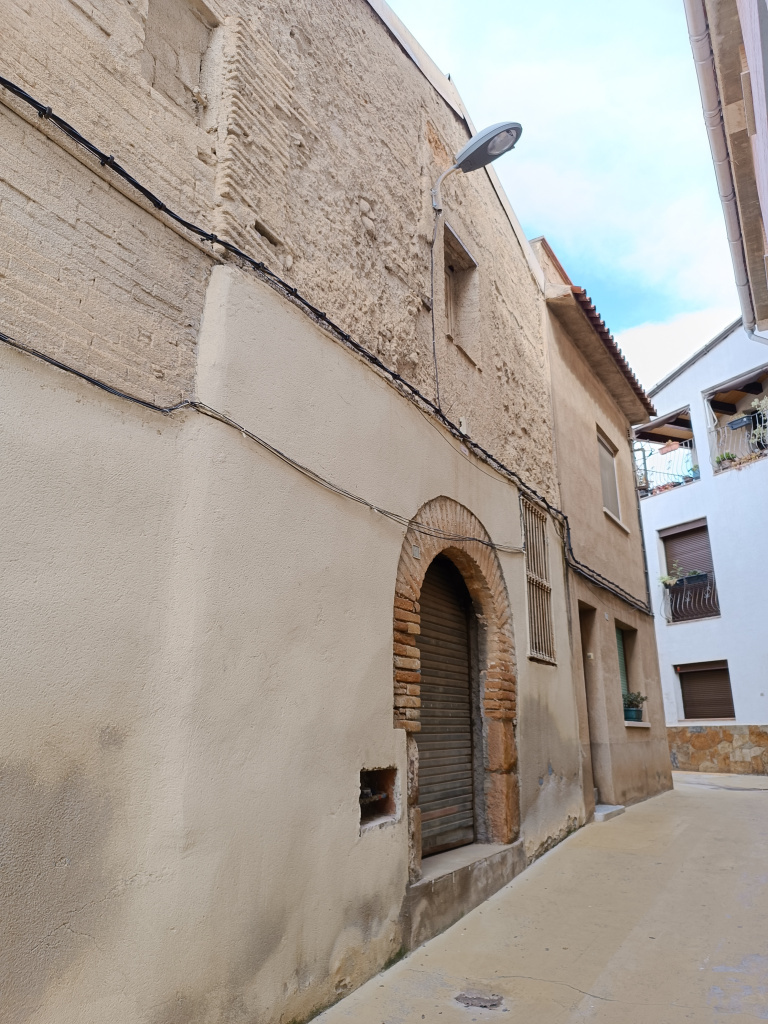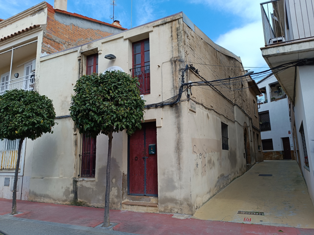 La façana principal està arrebossada i pintada de color crema. La façana lateral presenta el mateix acabat a la planta baixa, mentre que l’absència d’arrebossat del primer pis deixa al descobert la construcció a base de maons.