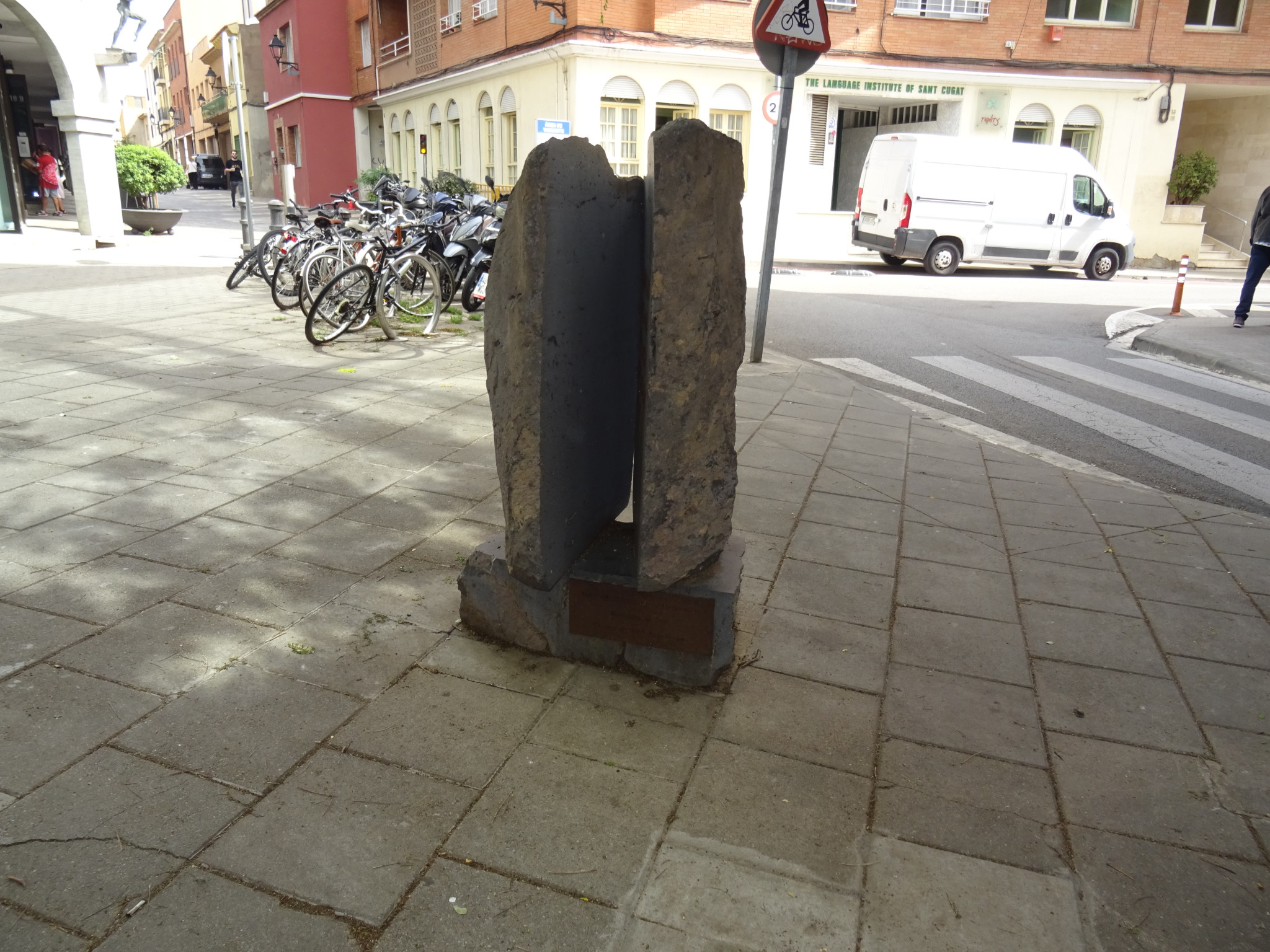 Monument de Pep Codó Masana en homenatge als mitjans de comunicació locals de Sant Cugat del Vallès amb motiu dels vint-i-cinc anys del Tot Sant Cugat. Pep Codó i Masana (Sant Cugat del Vallès, 1946) es va formar a l'Escola Massana i és autor de diverses escultures de Sant Cugat com la Rosa dels Vents al Turó de Can Mates o la placa d'Homenatge a Roc Codó Serra.