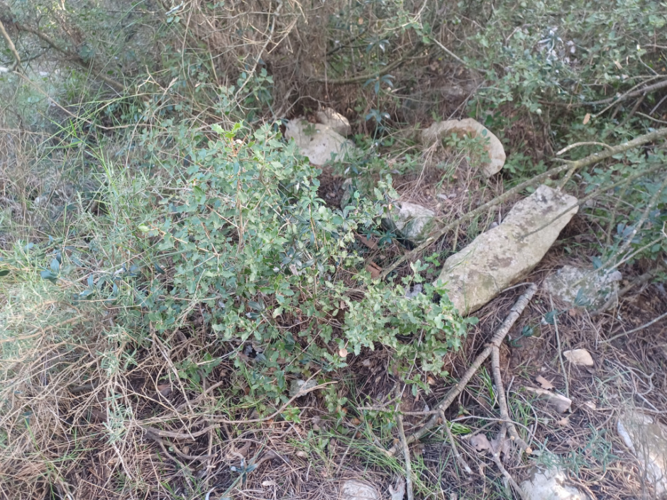 Jaciment format per una possible cista que conserva la capçalera i una llosa lateral a banda i banda d’1,75 m. de longitud per 0,72 m. d’amplada; un mur de lloses de petites dimensions amb una orientació nord-sud; i una cista d’1,70 m. de longitud per una potència visible de 0,20 m.