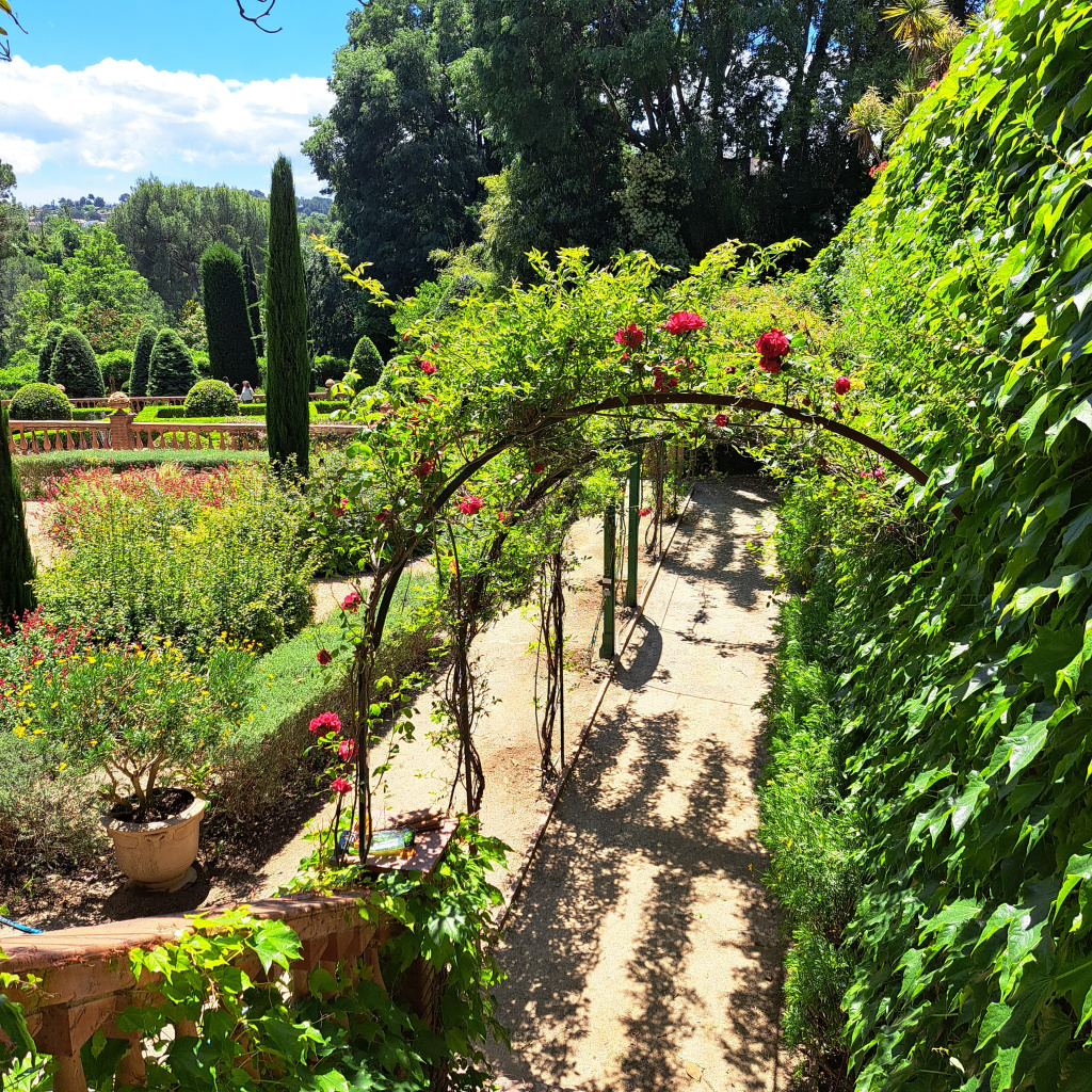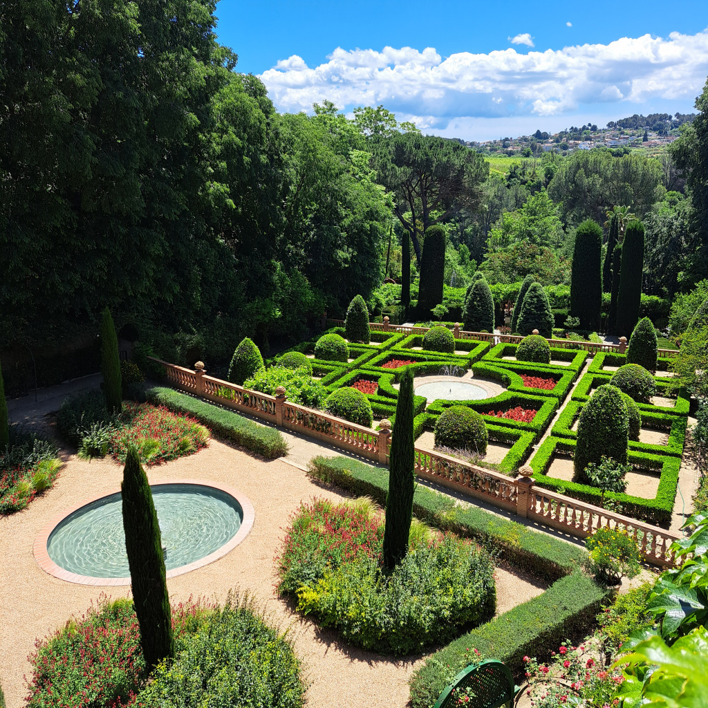 Es tracta d'un jardí de grans dimensions i de gust italianitzant, disposat en bancals esgraonats en sentit descendent i delimitats amb baranes de balustrada ceràmica. Hi trobem un contrast compositiu a cada bancal a través de plantes, flors, fonts; enllaçats a través de passadissos, pèrgoles, terrasses...; entre els que destaca el bancal central amb una font central envoltada per un laberint de boix. En destaca també un pavelló d'estiu on hi ha la font d'en Freixedes.