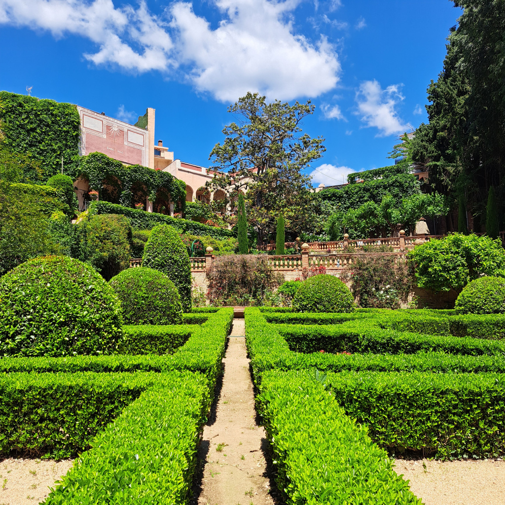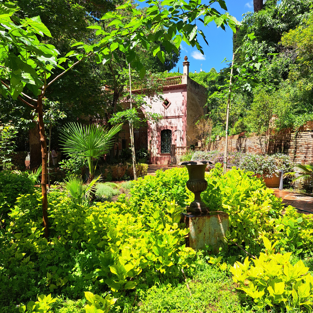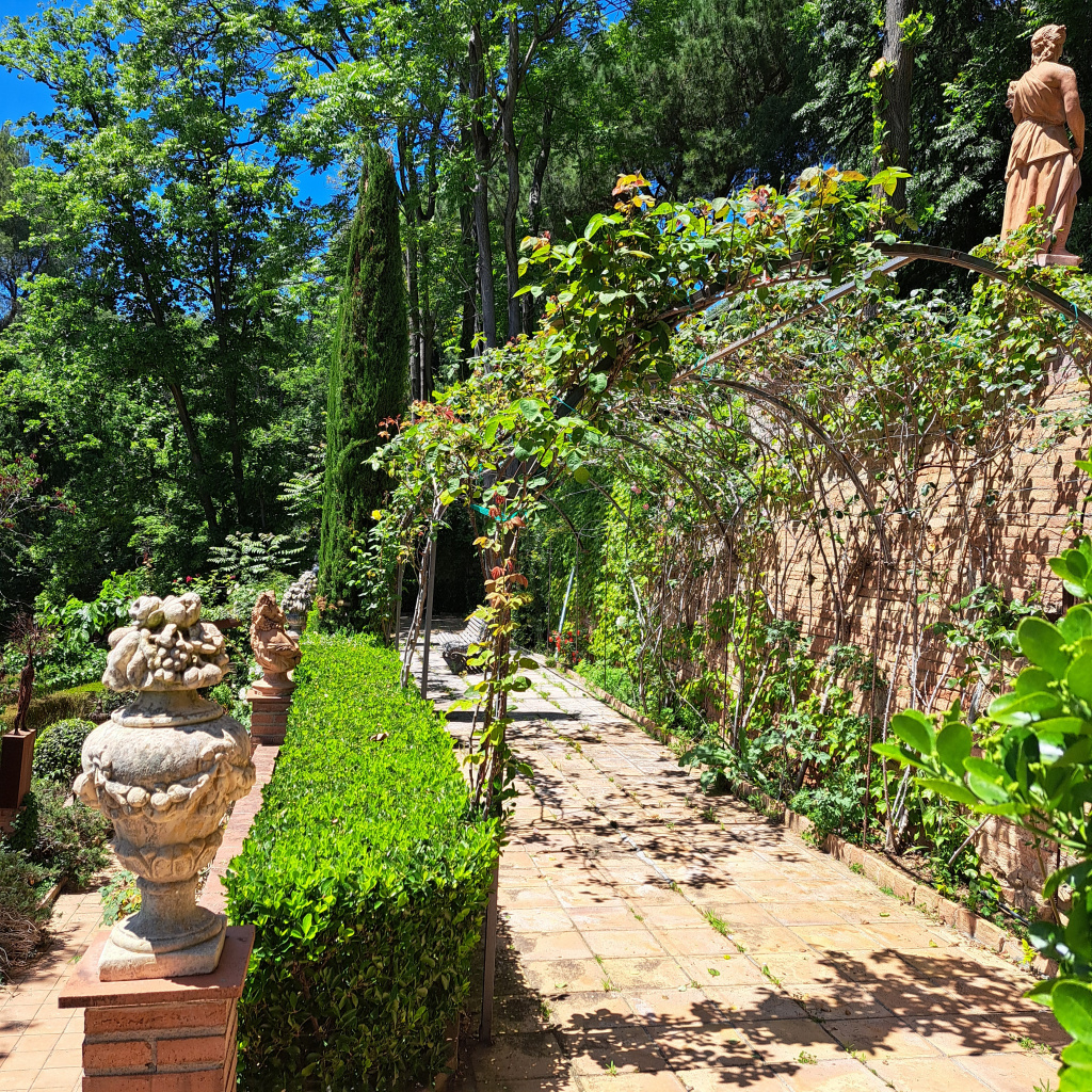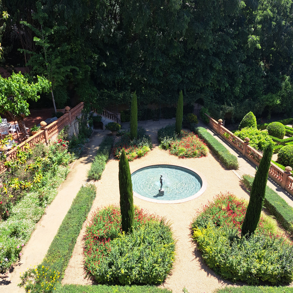Al pati posterior de la casa senyorial de Can Víctor Riu s'hi obre un magnífic jardí.