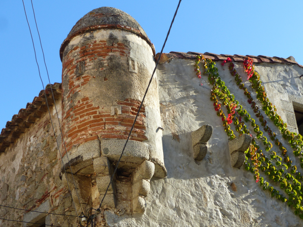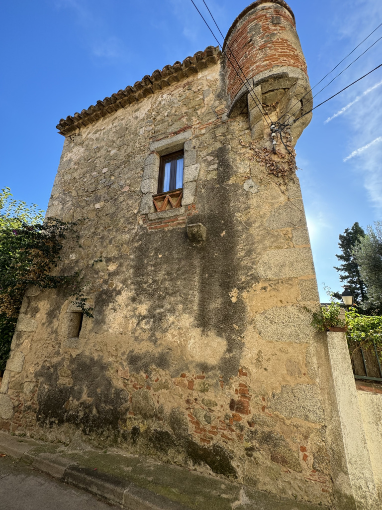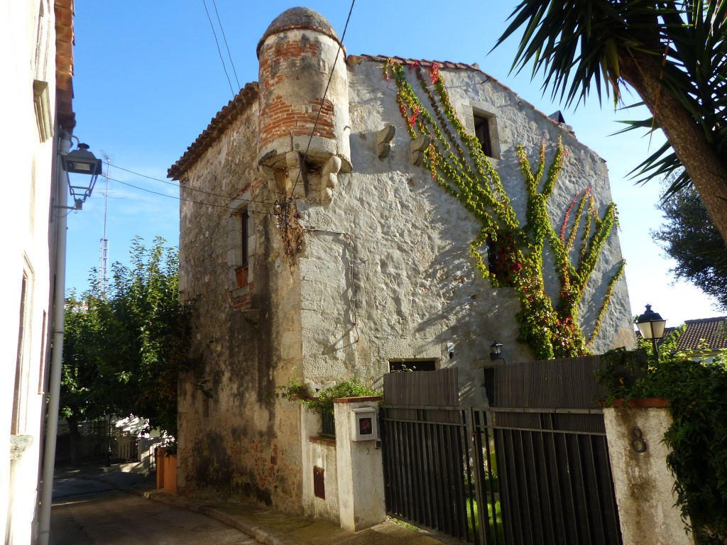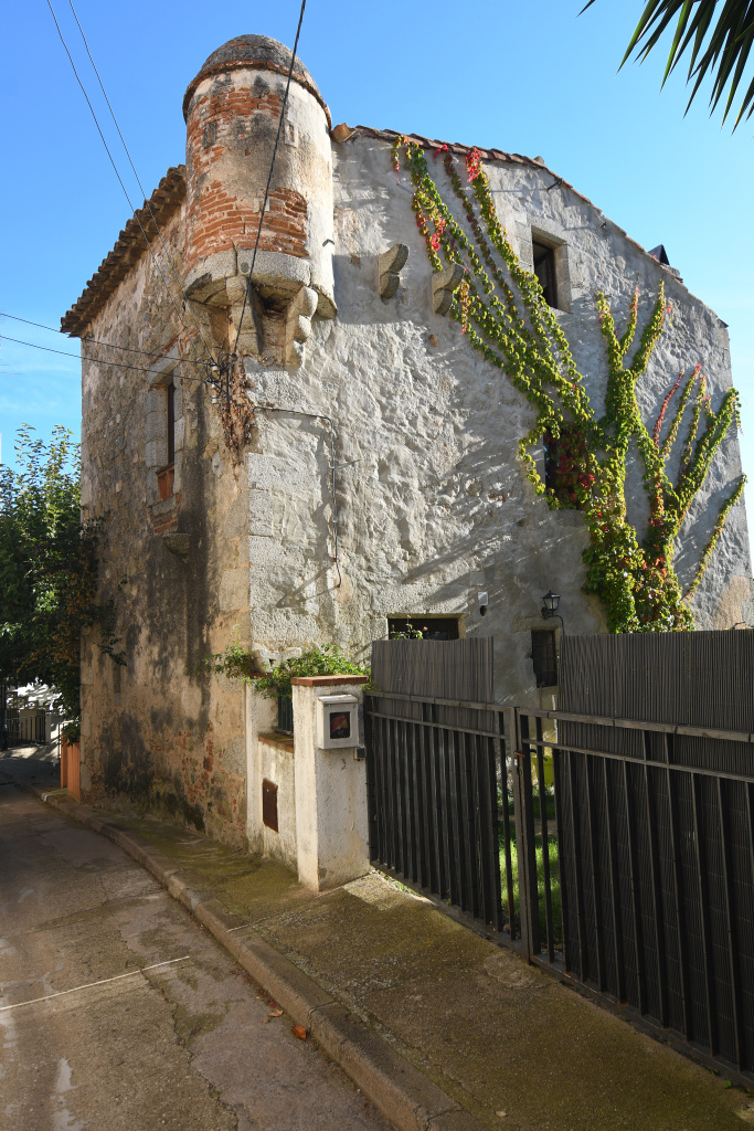 A l'angle de ponent, s'observa un torricó de guaita i les mènsules del matacà sobre una porta d'accés lateral. També, a la façana que dona al carrer, es pot veure una obertura del que es diu que va ser un pas aeri que conduïa a l'edifici de l'altre costat del carrer.