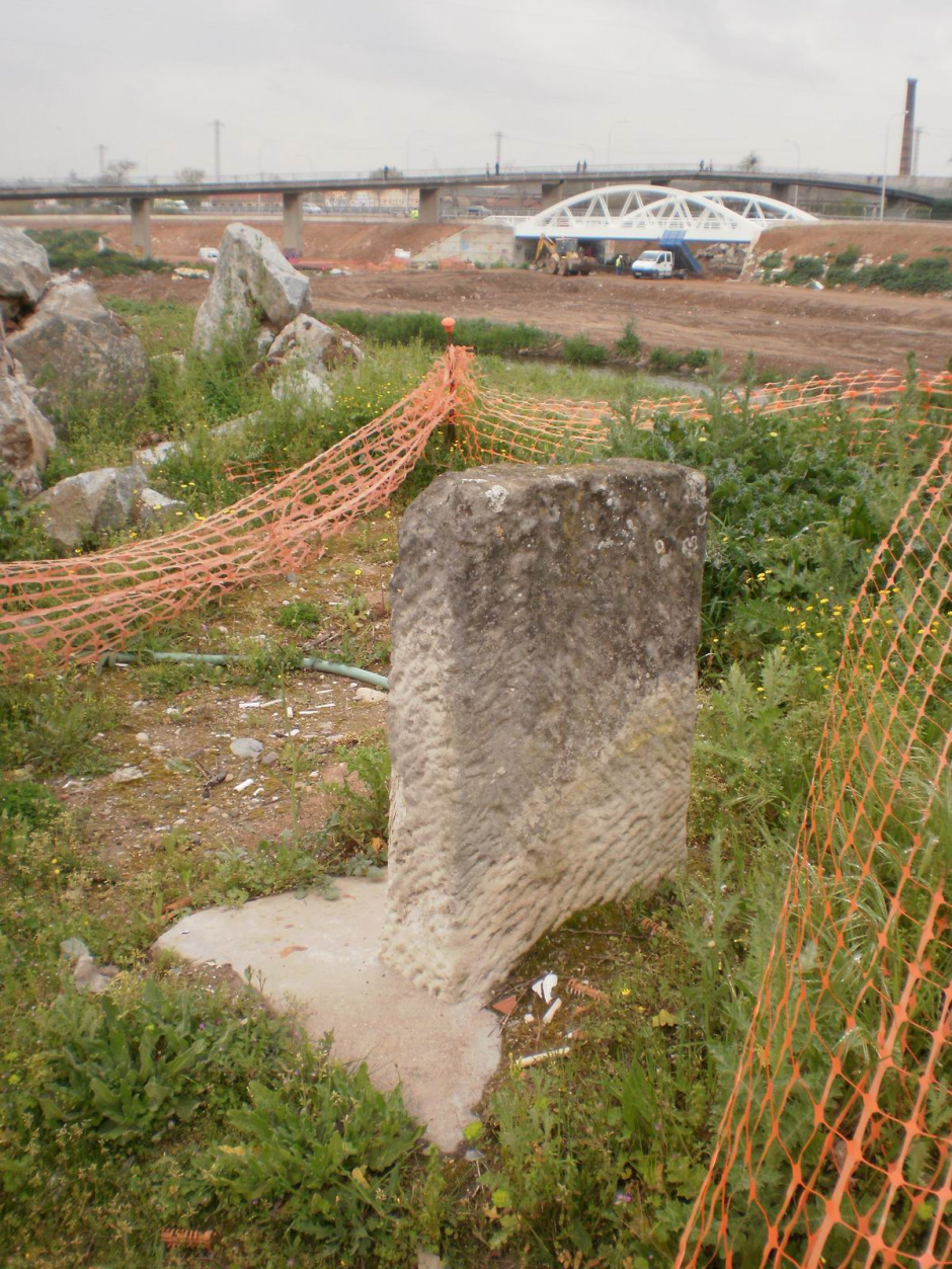 La inscripció no es pot llegir en la seva totalitat a causa del desgast de la pedra. Es conserva a un magatzem de l'ajuntament.