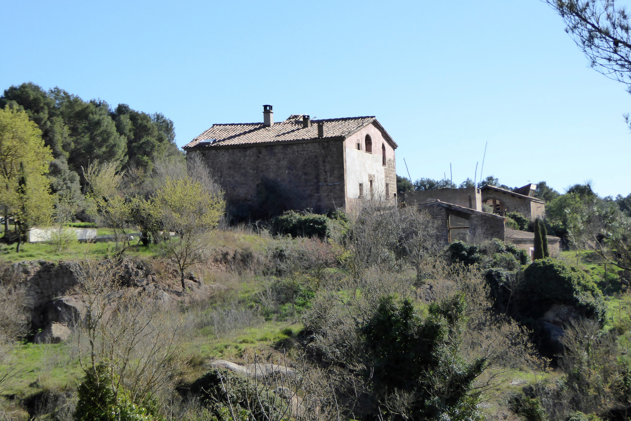 Entre el cos principal i els coberts de migdia es conserva una tina excavada a la roca que probablement correspon a la fase més primitiva del mas i que, en un moment donat, va quedar amortitzada, ja que es troba en un lloc de pas. Uns 100 m al nord-oest es conserven els fonaments d’un forn d’obra o teuleria, i a ponent les restes d’una bassa avui aprofitada també com a piscina.