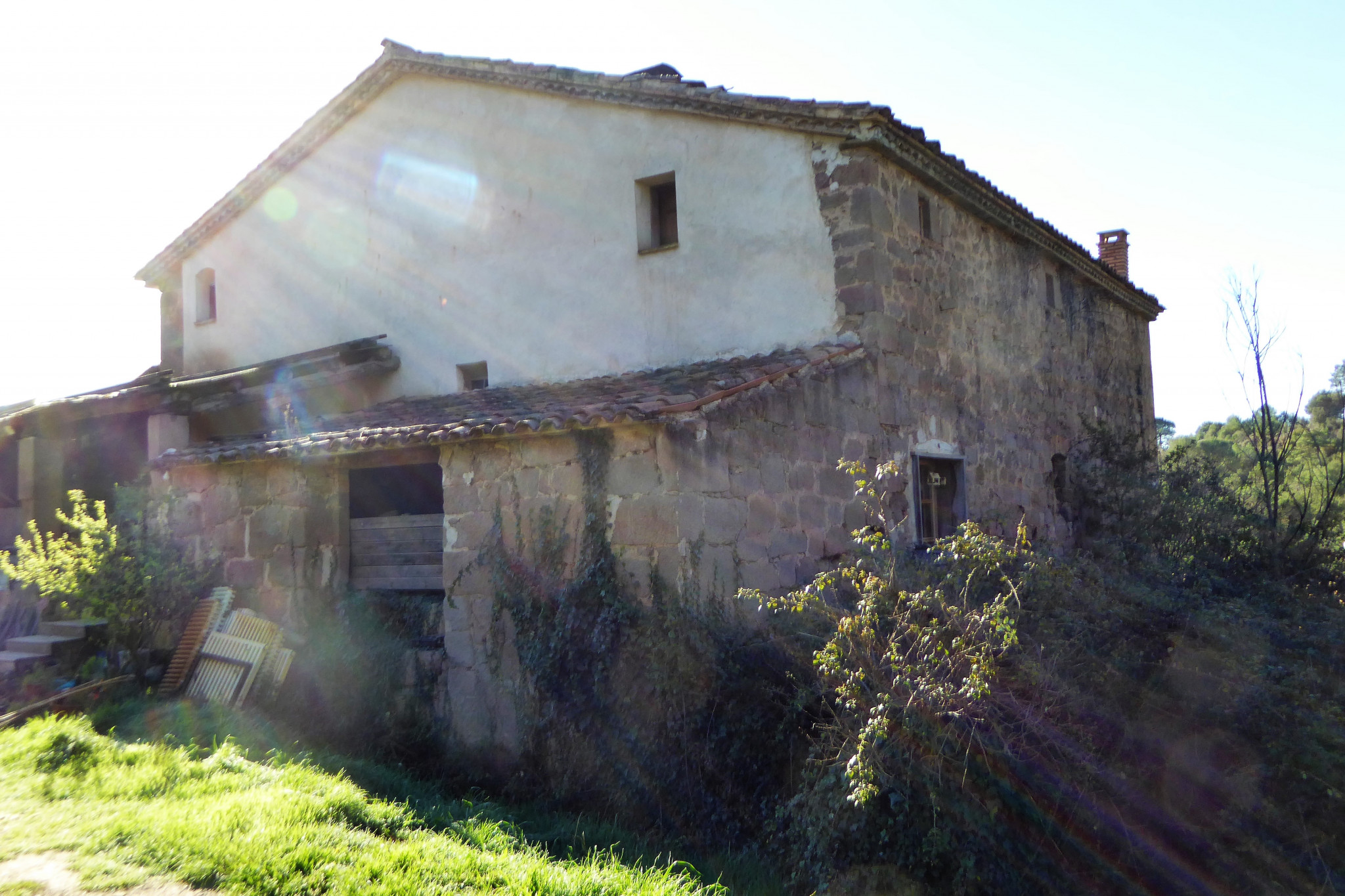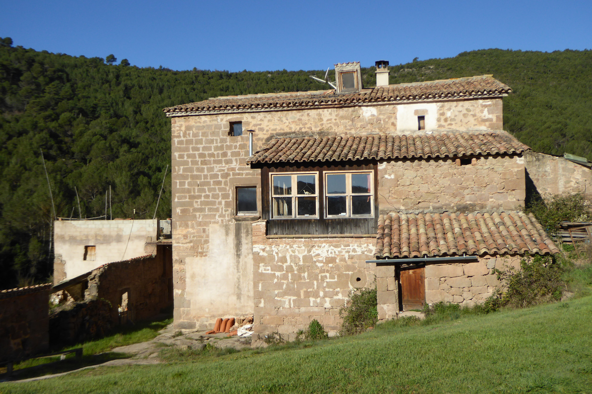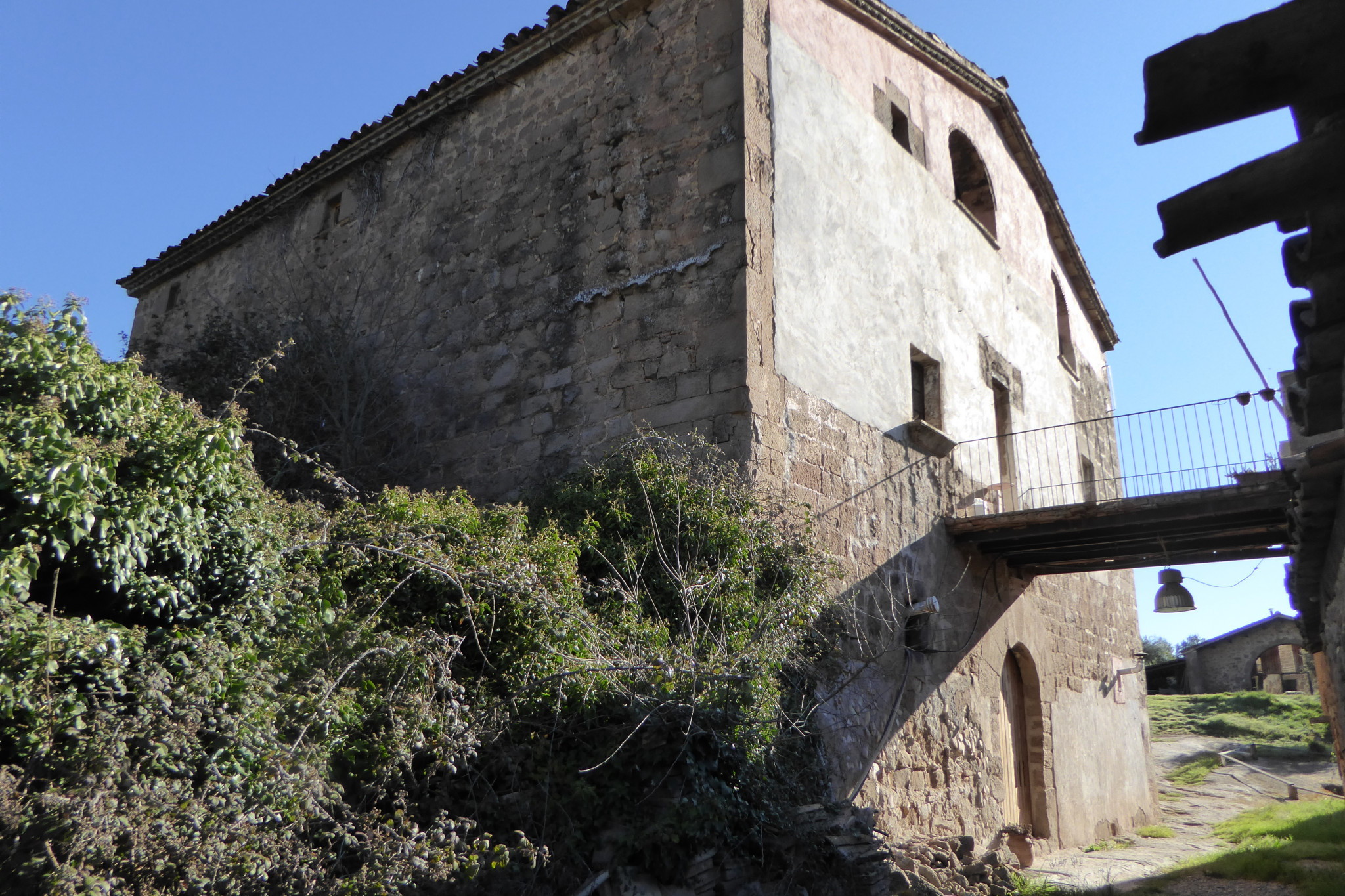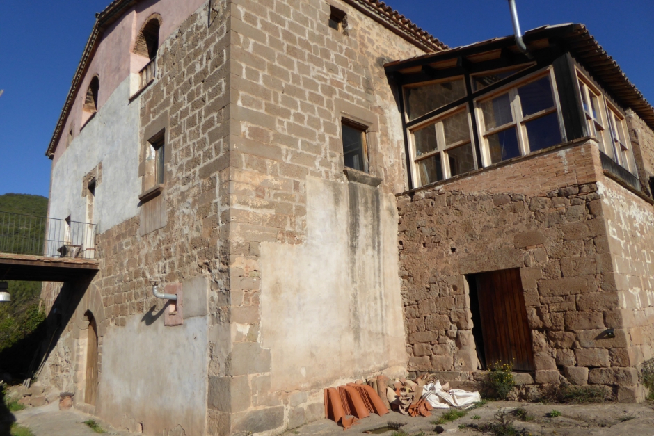 Són molt interessants els coberts del sector sud, que s’assenten en un terreny rocós amb desnivell, al límit de la cinglera. Alguns indicis arquitectònics apunten a l’existència d’una construcció primitiva que podria ser el punt d’origen del mas. Posteriorment aquesta part es va ampliar en diferents fases fins a completar una àrea considerable de dependències de treball. Una part d’aquestes dependències es troben rehabilitades i una altre en semi-ruïna. Entre el cos principal i aquests coberts hi ha un pas aeri, construït probablement al segle XIX. Pel que fa a la pallissa, caracteritzada pel gran arc davanter, fou construïda el 1832 i es troba en bon estat de conservació. Un fet curiós és que té diverses rajoles amb inscripcions de frases poètiques. Al seu davant compta amb una era enrajolada.