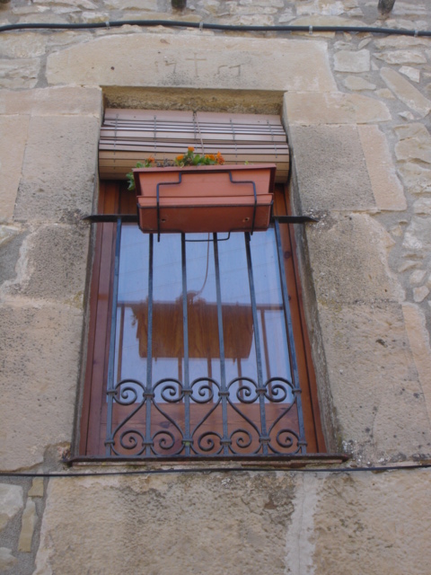 Llinda monolítica que té gravada la data de 1751 amb una creu al mig. Descansa sobre dos brancals formats per carreus rectangulars i quadrangulars ben escairats que ressalten damunt el parament irregular de la façana. El balcó està situat al primer pis de la casa.