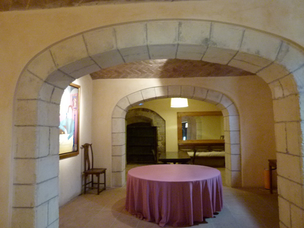 A l’interior trobem portals de pedra, arcades, pertanyents a diferents moments històrics de l’evolució de la masia, juntament a obra moderna, com voltes de maó de pla. L’edifici es comunica amb una de les naus utilitzades com a celler.