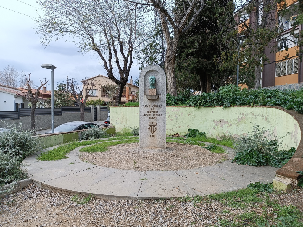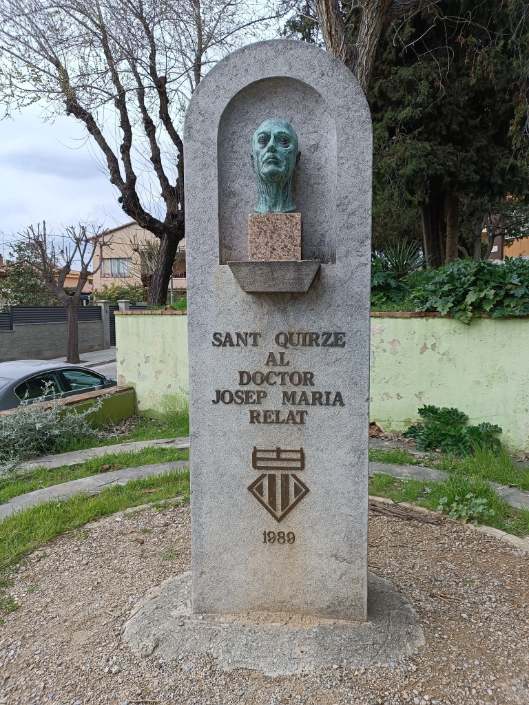 Escultura formada per un monòlit de pedra de dos metres i mig acabat en semicercle amb una fornícula a la part superior que conté un cub de granit. Aquest serveix de suport pel bust de bronze del doctor Josep M. Relat. A la part central del monòlit hi ha, en lletres metàl·liques, la inscripció “SANT QUIRZE AL DOCTOR JOSEP MARIA RELAT" i, sota, l’escut de Sant Quirze del Vallès i l'any: 1989.
