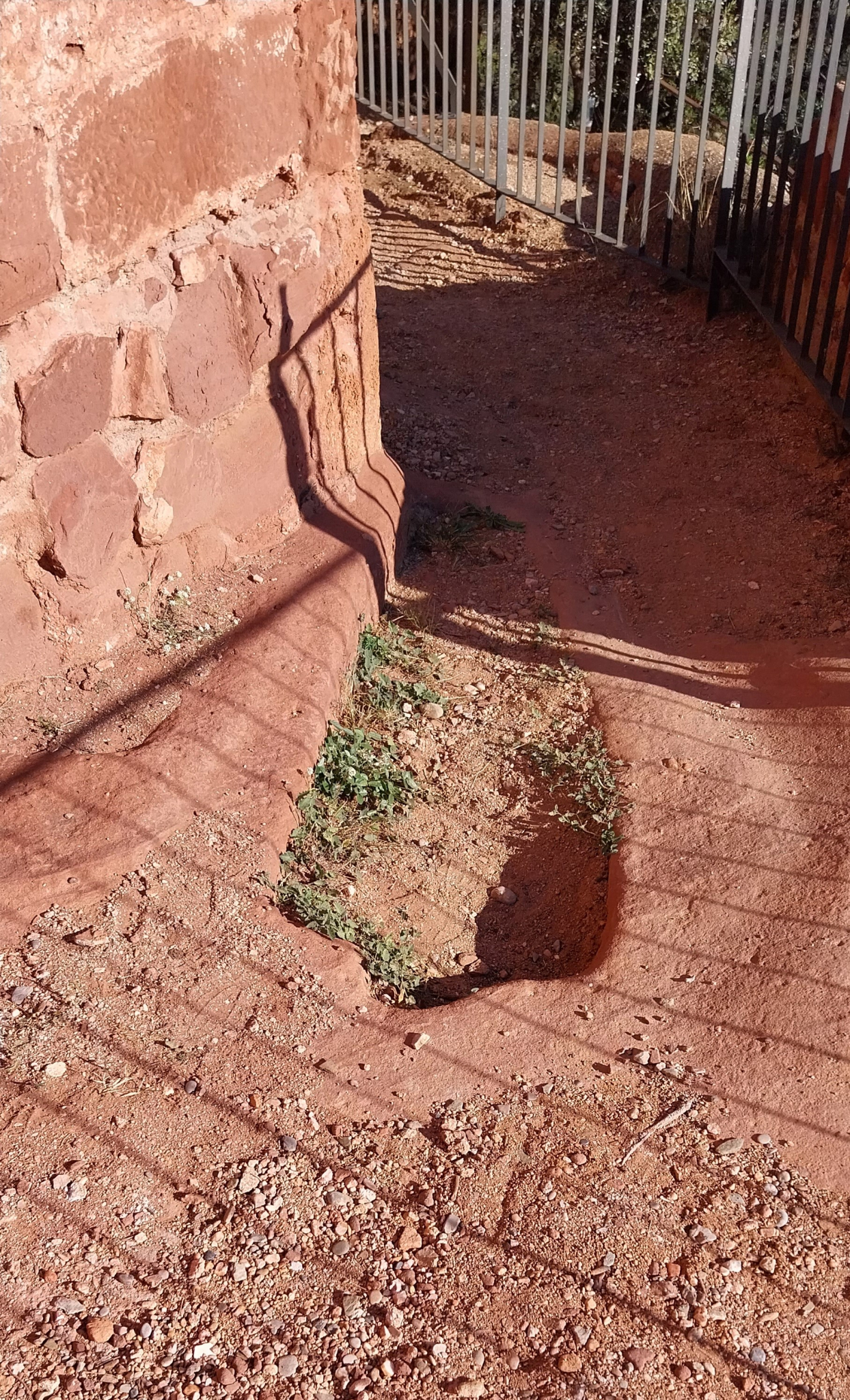 La segona rasa de drenatge, localitzada a la terrassa est, va proporcionar informació sobre la divisió d'aquest espai en dos àmbits mitjançant un mur perpendicular al mur de tancament est. El cantó sud d'aquesta terrassa es va utilitzar fins al segle XVIII, segons indicacions dels materials trobats, i durant el segle XIX, aquest espai es va tancar, ampliant el cementiri cap al nord. Una troballa destacada durant la neteja del sector est va ser la descoberta d'una tomba infantil antropomorfa.