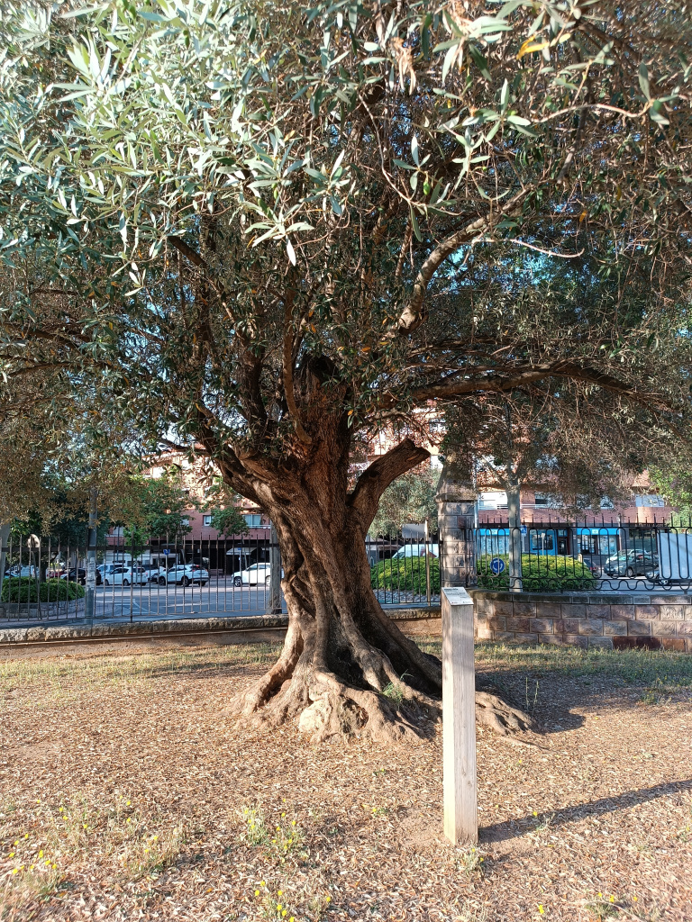 Olivera (olea europaeade) robusta i de dimensions considerables dins la seva espècie. Té una soca ampla, de 8 metres de circumferència, que es bifurca a la base. Aquesta soca i les seves grans arrels denota antiguitat. Presenta una capçada simètrica i circular, d'aproximadament 10 metres de diàmetre, i sobrepassa els 10 metres d'alçada.