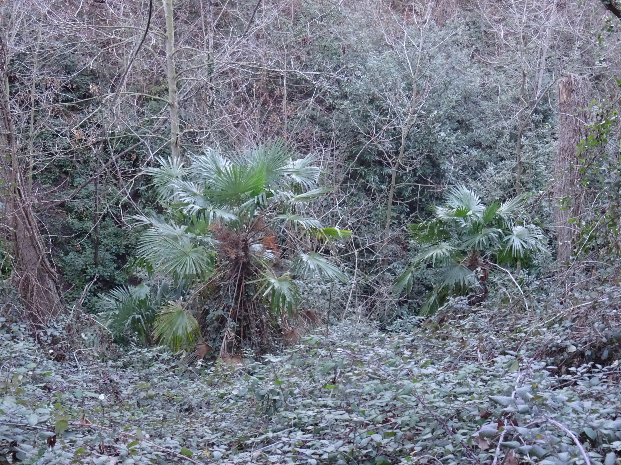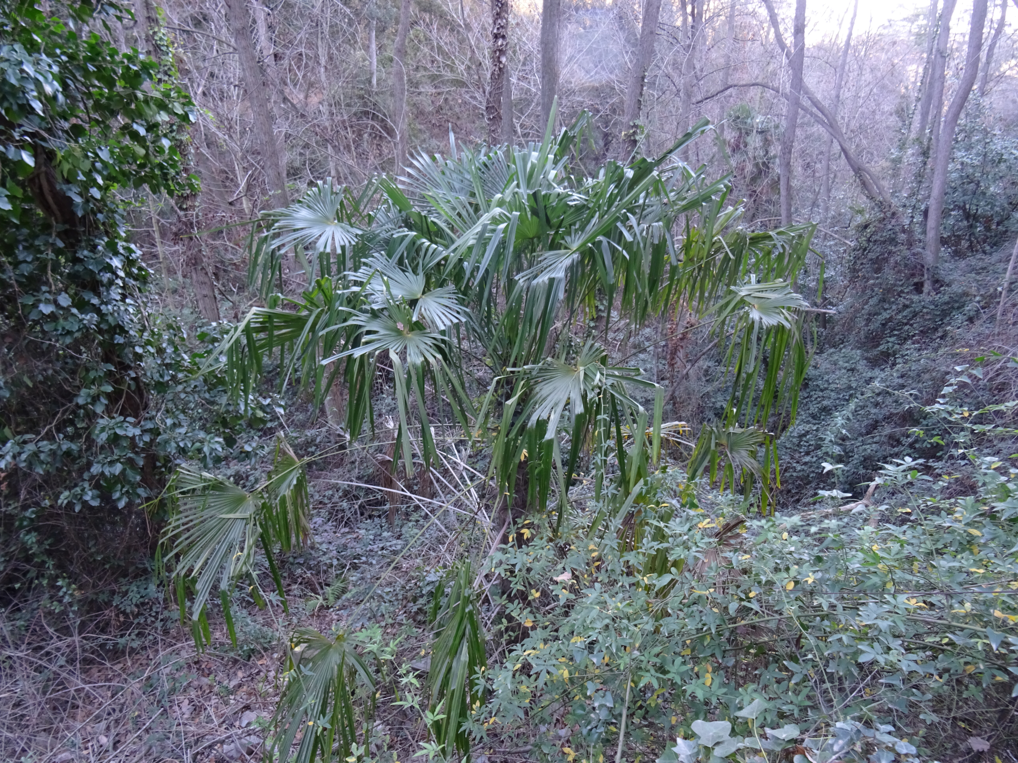 La Trachycarpus fortunei és de la família de les arecàcies, originària de la Xina. El nom comú en català és palmera excelsa. va rebre el nom en honor al botànic Robert Fortune que va introduir la planta del te a l'Índia. L'arbre pot arribar als 12 metres d'alçada, i la part superior queda recoberta per les beines de les fulles caigudes. Les fulles són palmades, i produeix dàtils petits de color blau fosc que no són comestibles.