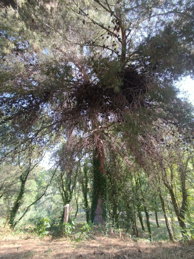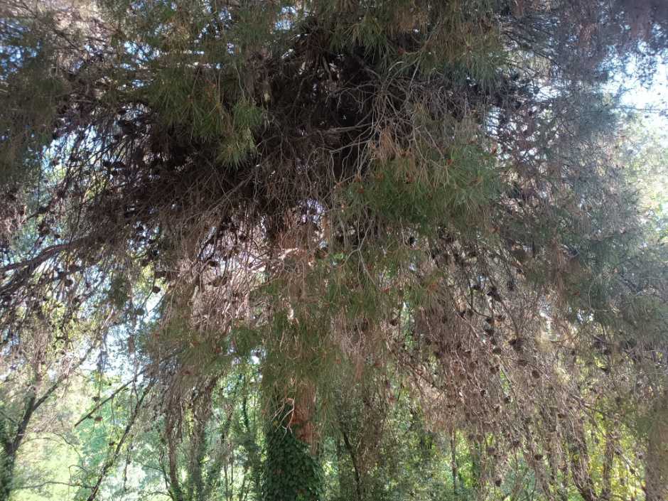 El pi mostra signes de dessecació en algunes branques secundàries.