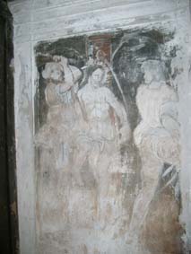 Es tracta de dues pintures murals situades una al Santíssim i l'altre a l'absis. La primera és una pintura mural que representa el martiri de Jesús, on apareixen tres personatges diferents: Jesús i dos botxins (un a banda i banda del primer). Destaca el color negre del fons. Està tan deixat que ha començat a desdibuixar-se i perdre gran part de la policromia original, sobretot per la part inferior. La pintura que cobreix tota la zona de l'absis és molt simètrica. A la banda dreta i l'esquerra hi ha un motiu que representa el món celestial on, sobre d'un núvol, trobem tres àngels vestits amb túniques i ales. Dels àngels n'hi ha un de més gran que té una ploma a la mà esquerra i una corona vegetal a la mà dreta, com si fos un escrivà o algun personatge que decideix l'entrada al cel. Els altres dos angelets interactuen amb aquest. Dalt de tot hi ha un cercle que envolta una estrella que deu significar el reialme celestial. Destaca sobretot el fons blavós de la pintura. Segurament les pintures serien contemporànies.