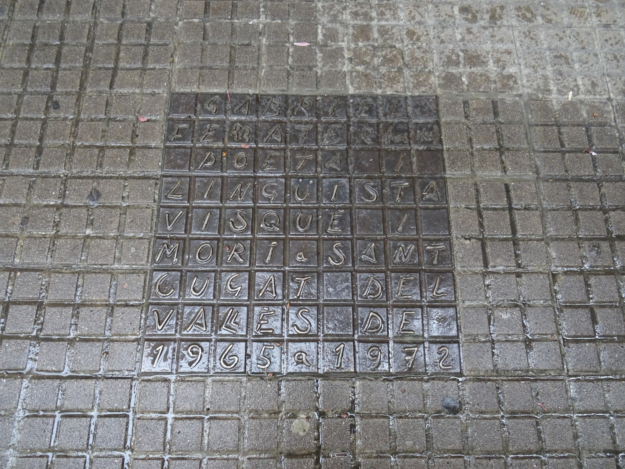 Placa col·locada davant del portal on va viure Gabriel Ferrater a Sant Cugat del Vallès i on es va llevar la vida el 27 d'abril de 1972. La placa va ser inaugurada el 27 d'abril de 2022 amb motiu del 50è aniversari de la seva mort. Gabriel Ferrater Soler va néixer a Reus el 20 de maig de 1922 i va morir el 27 d'abril de 1972 a Sant Cugat del Vallès. Es va dedicar a la poesia, a la crítica, a la traducció i fou lingüista. La seva obra poètica va ser escrita entre els anys 1958 i 1963 i va ser compilada en el llibre "Les dones i els dies". Va traduir Gombrowicz, Kafka i Chomsky, entre altres, al català i al castellà. També, va ser professor universitari a la Universitat Autònoma de Barcelona quan estava situada al claustre del monestir de Sant Cugat del Vallès.