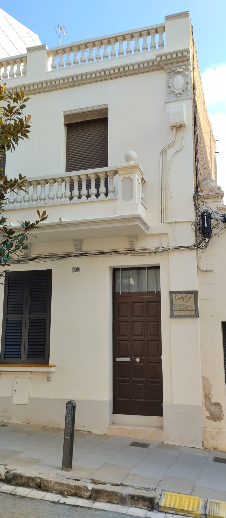 Presenta la representació d’una figura humana, de formes sinuoses, que balla envoltada per notes musicals. Una inscripció, que ocupa tota la placa resseguint la sinuositat de la figura humana, diu "l’art és allò que és bò".