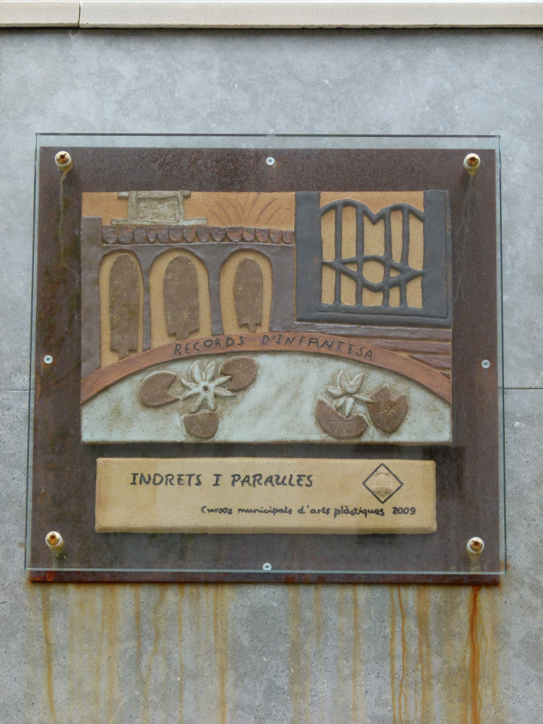 El plafó actual, instal·lat l'any 2025, és una rèplica realitzada per la ceramista Iona Palau Ribera. La placa original, autoria de Lourdes Puig, va ser malmesa quedant irrecuperable, motiu pel qual ha estat substituïda per la rèplica.