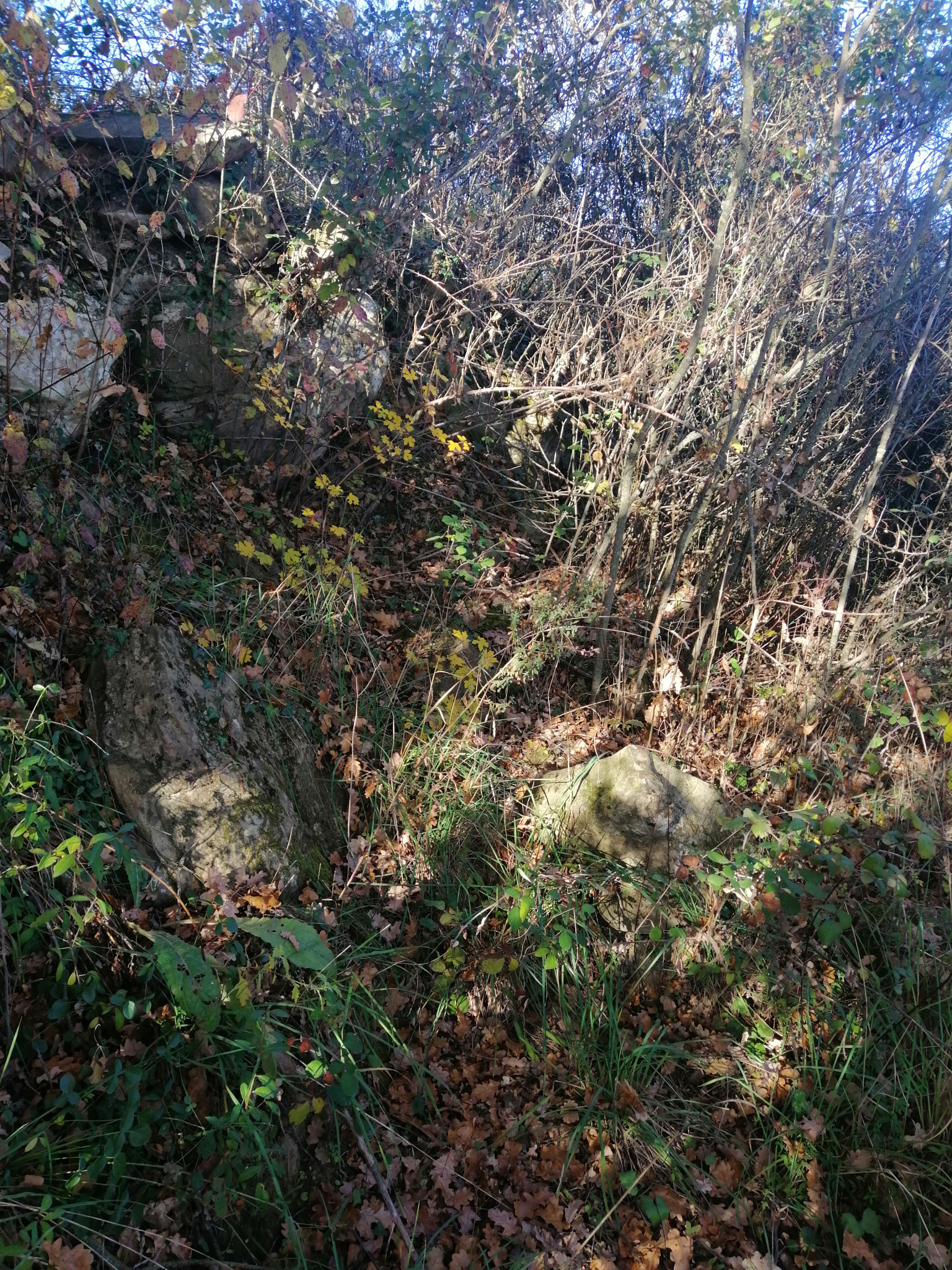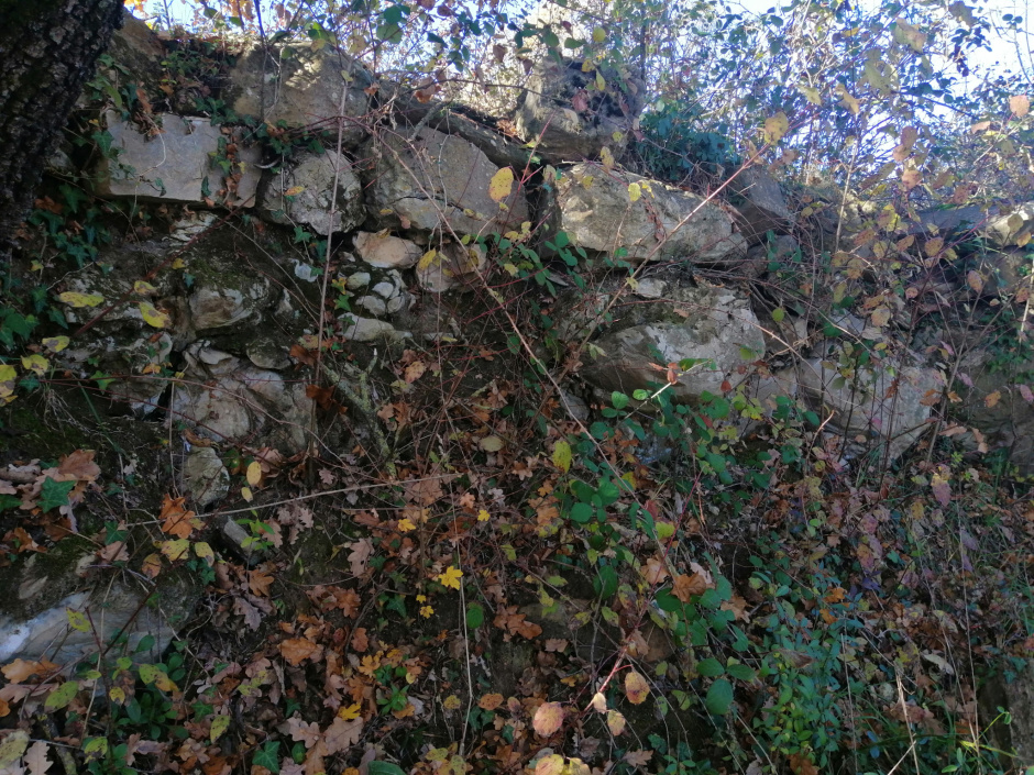 Es tracta d'un conjunt de restes de murs pertanyents a estructures de cases i antics habitatges situats a la part sud del denominat pla dels ocells i encarats mirant a la riera de Cusoms. En aquesta zona avui coberta de vegetació es poden endevinar restes de murs construïts en pedres d'una o dues filades, unides amb argamassa de calç i amb diverses orientacions. Aquestes estructures es disposen formant terrasses en diferents nivells que avui dia estan ocupades per petits horts i feixes de conreu. Atès que la zona està coberta de vegetació es fa molt difícil identificar-ne la seva extensió global.
