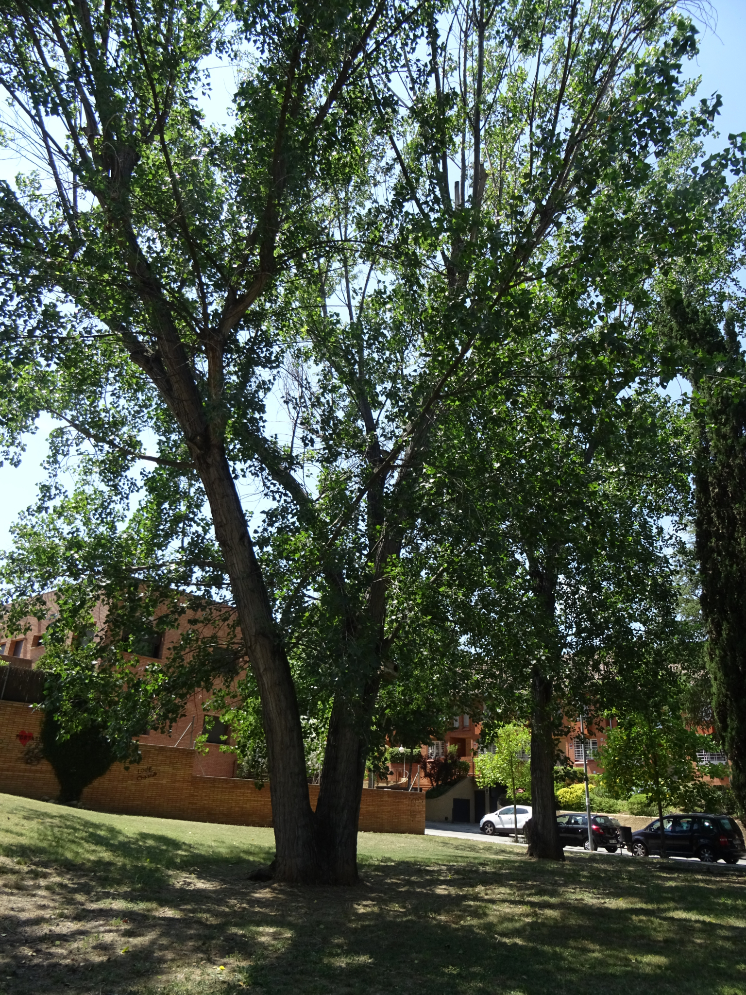 El Populus nigra és de la família de les salicaceae, originari d’Europa i d’Àsia occidental. El nom comú en català és pollancre. Populus és el nom llatí dels pollancres i nigra del llatí negre, per les costelles de l’escorça. L’arbre pot fer entre 20 i 30 metres d’alçada i la capçada, densa, pot mesurar entre els 2 i els 4 metres. L’escorça és llisa i negra. Les fulles són caduques, serrades i punta allargades, entre els 5 i els 10 centímetres.