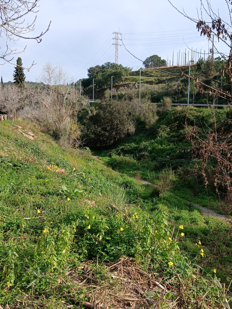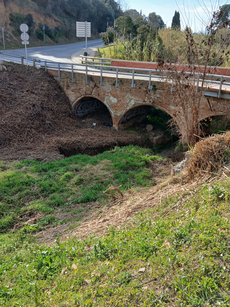 La vegetació al voltant del pont, ofereix una cobertura abundant de plantes i arbustos que creixen a banda i banda de la riera.
