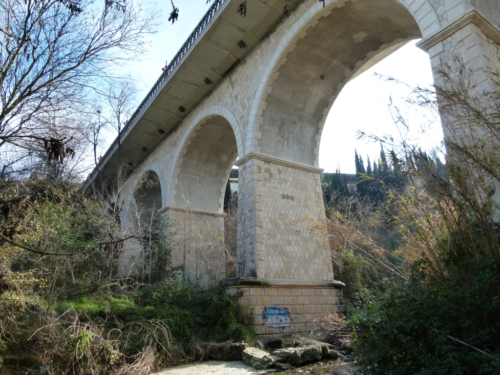 En el context del Pla de carreters provincial de 1878 elaborat per Melcior de Palau Català, es va projectar el traçat entre Sant Boi de Llobregat i Sant Quintí de Mediona, passant per l’Ordal, Sant Sadurní d’Anoia i la Llacuna. El projecte del pont, del mateix autor, data de 1881. El projecte preveia un ull més dels que es van fer. Es va inaugurar el 28 de novembre de 1883 (LACUESTA, GONZÁLEZ, 2008).