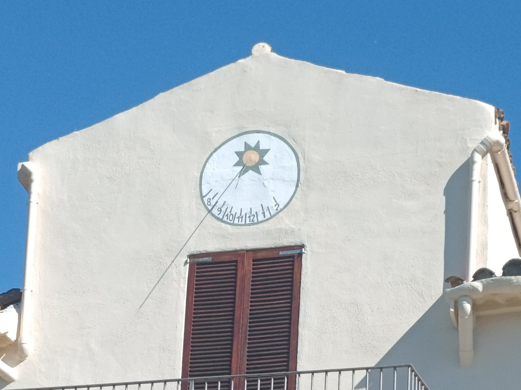 Rellotge de sol pintat a una de les façanes laterals de la masia de can Pallàs, orientada al sud. Té forma circular; el contorn, les línies horàries i els números aràbics estan pintats de color gris-verd sobre un fons blanc. Indica les hores i mitges hores. Al pol hi ha dibuixat un sol d'estètica contemporània, probablement repintat sense respectar l'original en la restauració de la façana. Del centre d'aquest element en surt el gnòmon o vareta.