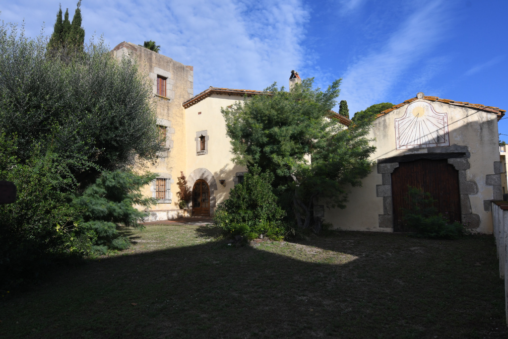 Rellotge de sol situat dessota el ràfec mateix de la cotxera de can Brunet o can Sauri. És del tipus vertical declinant, amb orientació sud-est. Presenta un pla rectangular amb frontó, on s’hi ha dibuixat un astre solar de color groc amb els raigs solars que n'alternen un de llarg i un de curt.