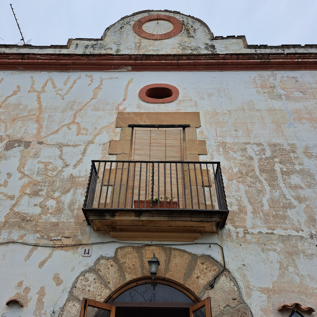 Rellotge de sol vertical que es troba situat al capcer de la façana principal de la masia de Casa Blanca.