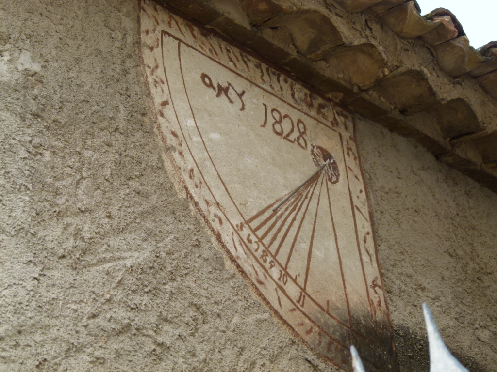Té el gnòmon de vareta i la inscripció: "ANY 1828".