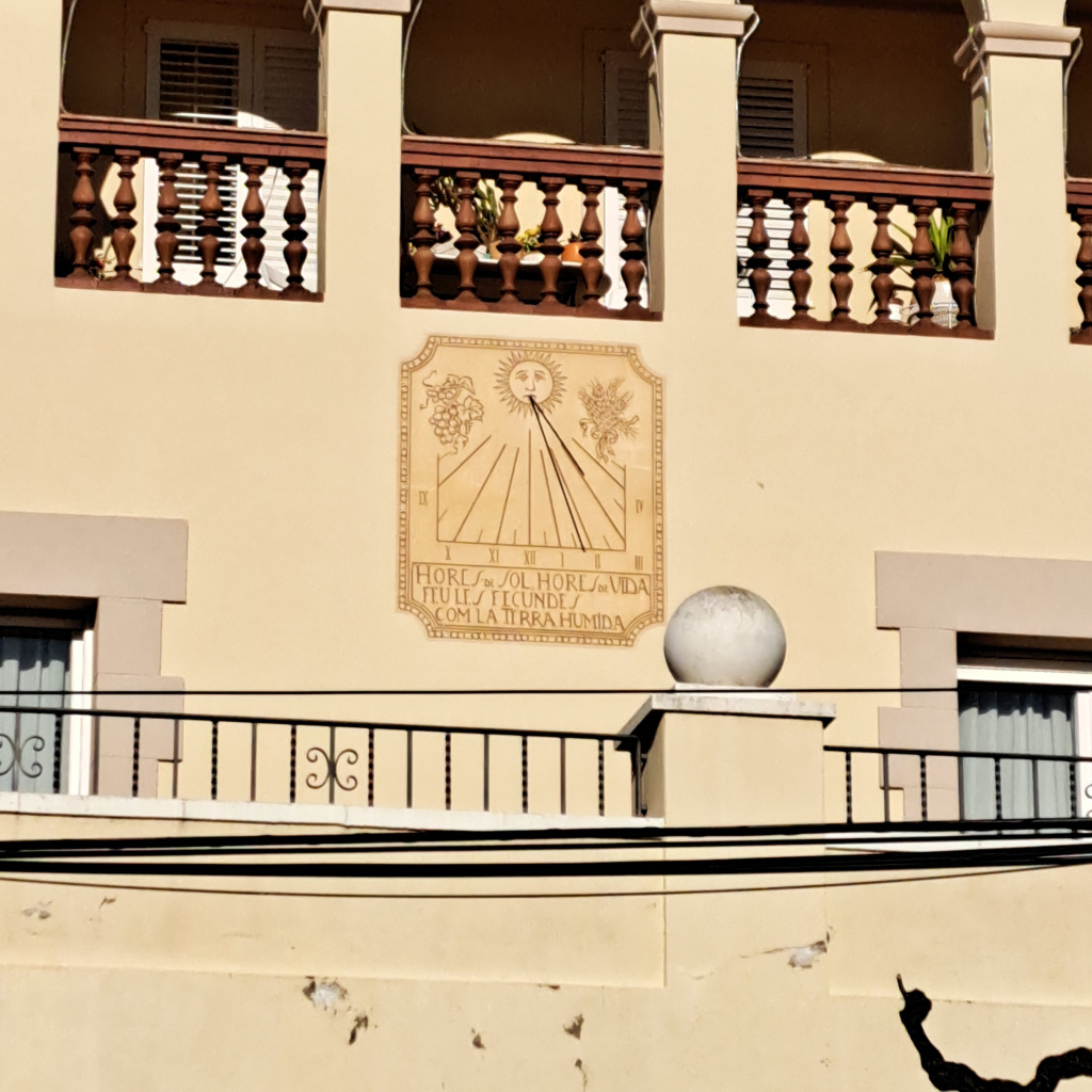 Rellotge de sol vertical que es troba situat a nivell del primer pis de la façana lateral de la Torre Solana.