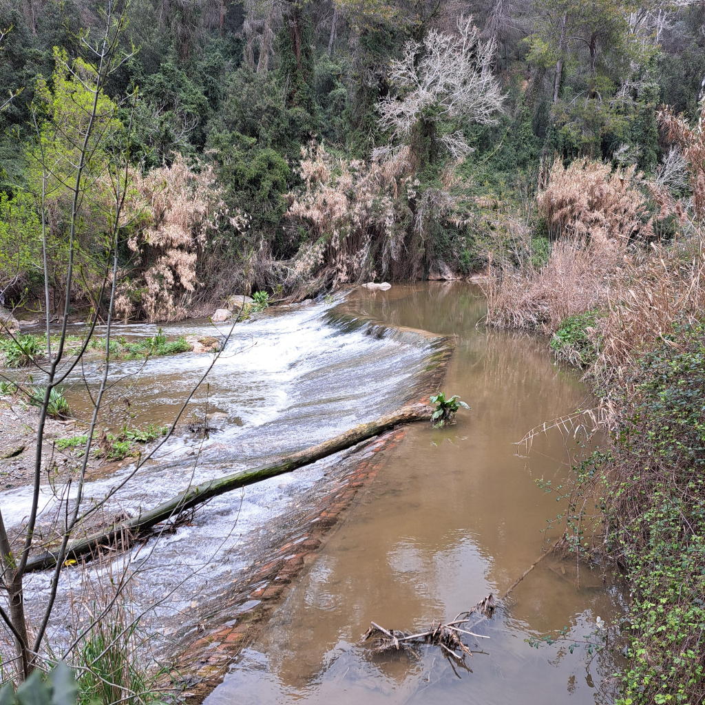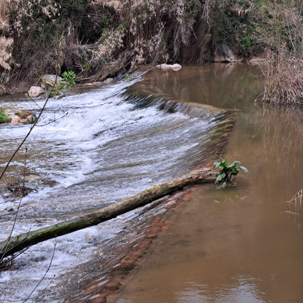 La resclosa es troba construïda al riu Anoia, aigües amunt de la fàbrica de Can Ferrer del Coll.