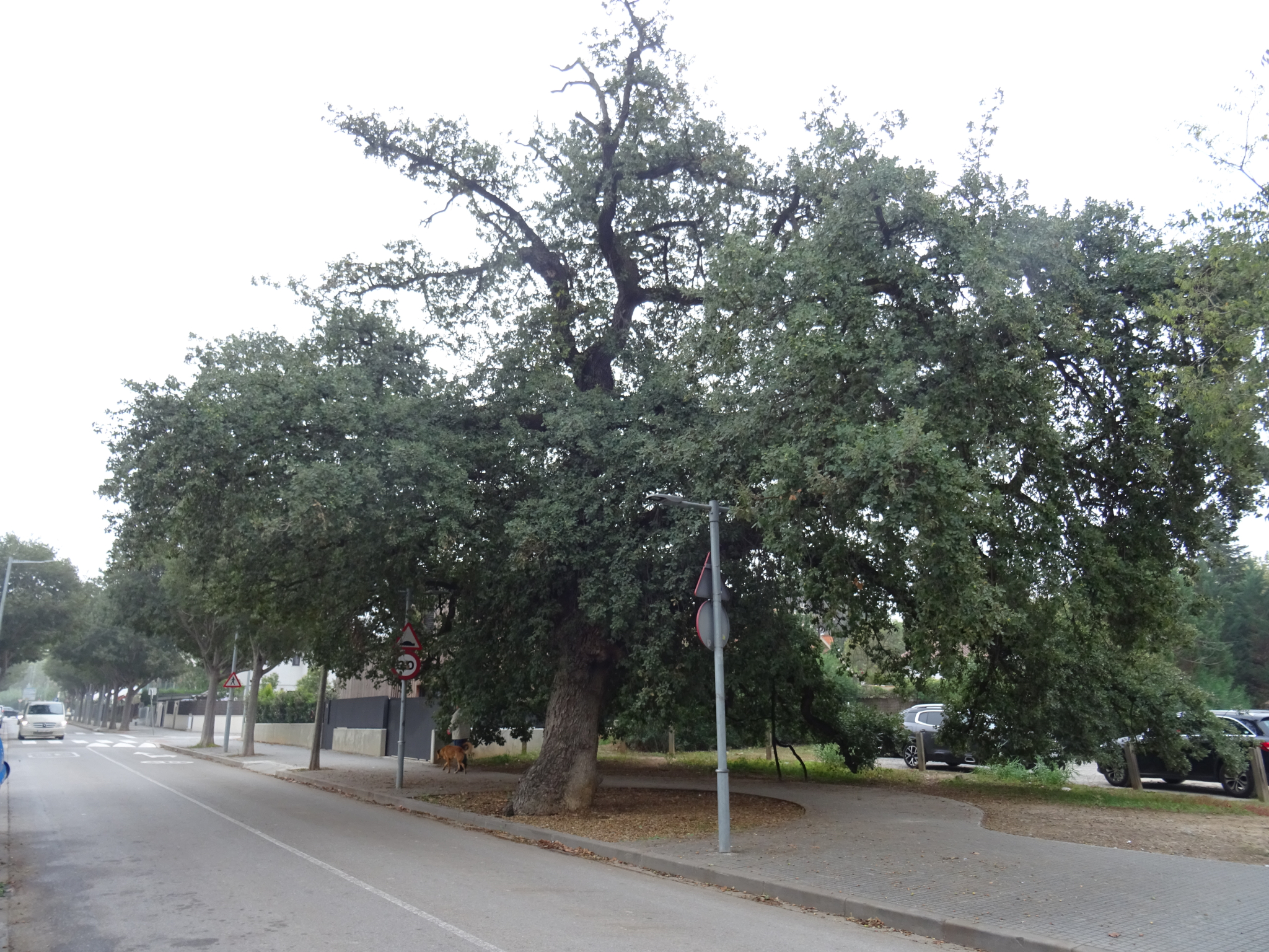 Al camí de Sant Cugat al Papiol hi trobem aquest roure, un exemplar de Quercus x cerrioides. Està situat a la vorera, a costat d'una futura zona verda que actualment és emprada com un aparcament de terra. L'arbre està delimitat per un gran escocell semicircular i està protegit per bol·lard a la banda del solar.